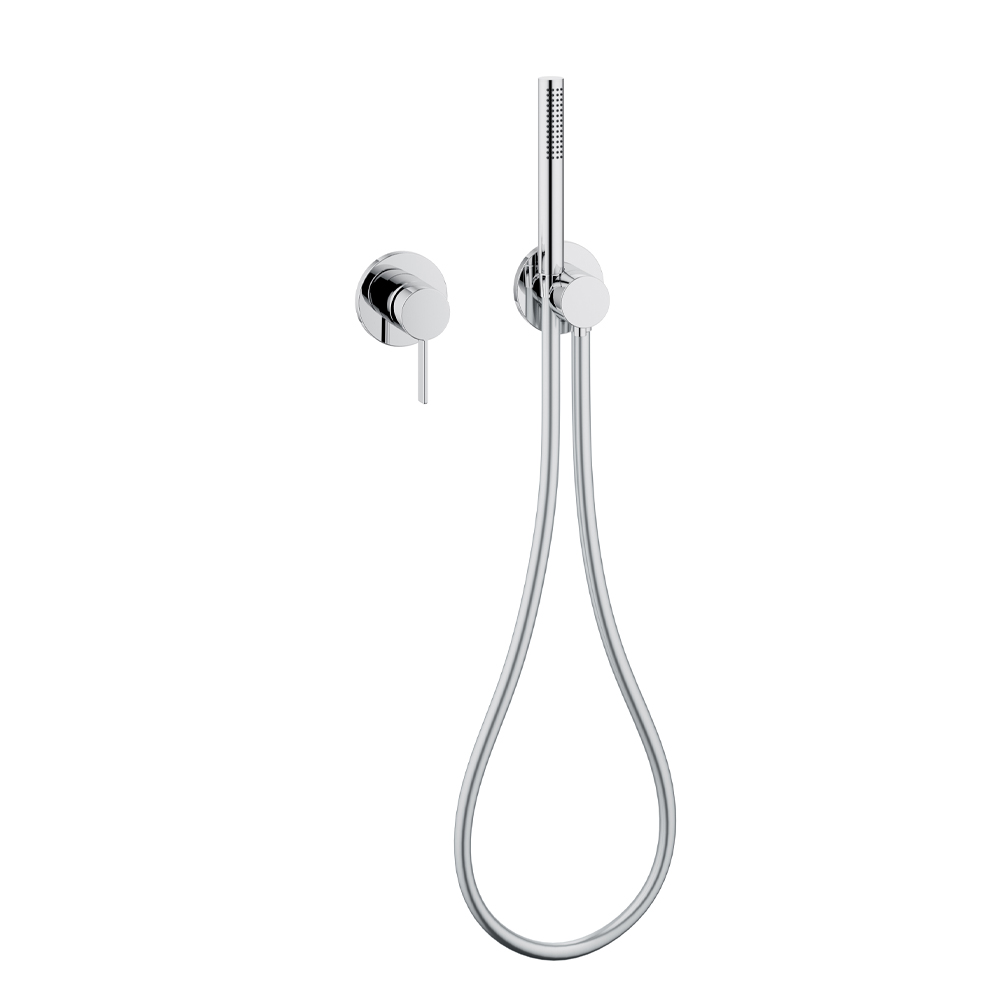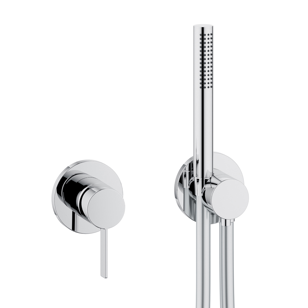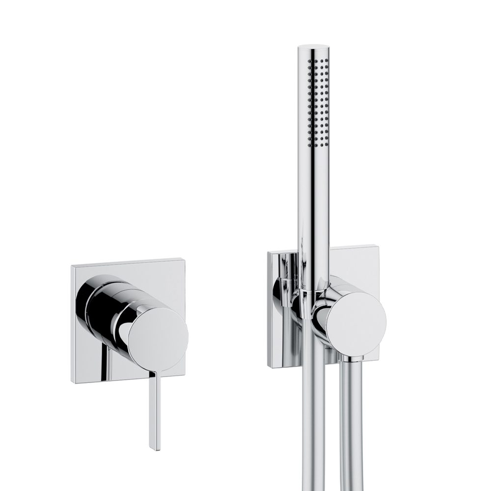 Cette cabine de douche intérieure à installation bidirectionnelle avec mitigeur monocommande, raccord de tuyau, support de douchette et pomme de douche a un design simple et minimal avec un choix de rosace ronde ou carrée et est entièrement réalisée en laiton chromé . Le résultat est un petit module caractérisé par un concentré intelligent de technologie innovante dans un design radical et minimaliste : le mélangeur et le raccord de tuyau sont connectés de manière unique pour un effort d'installation minimal et un confort fonctionnel maximal.