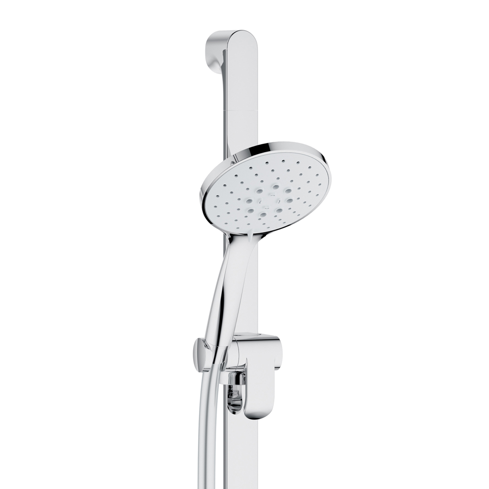 Mitigeur de douche avec mitigeur monocommande minimal et pomme de douche.