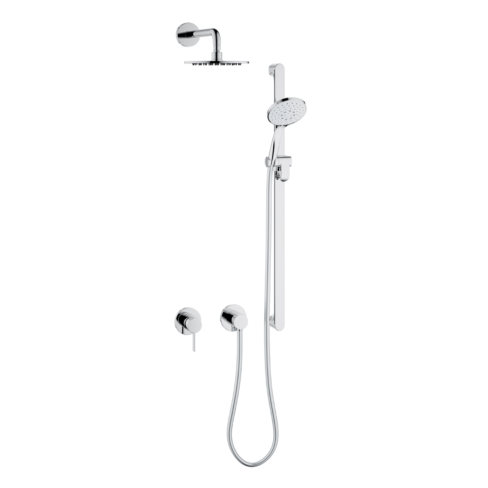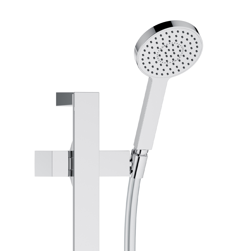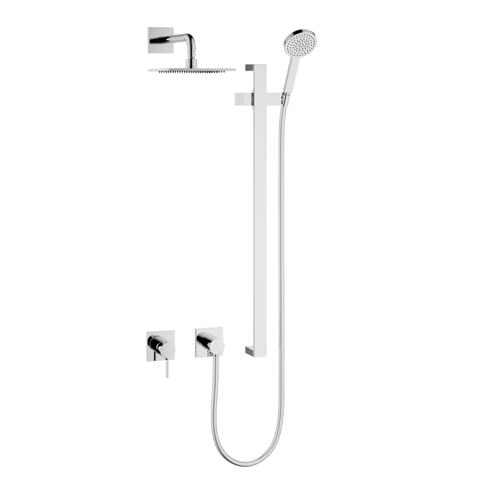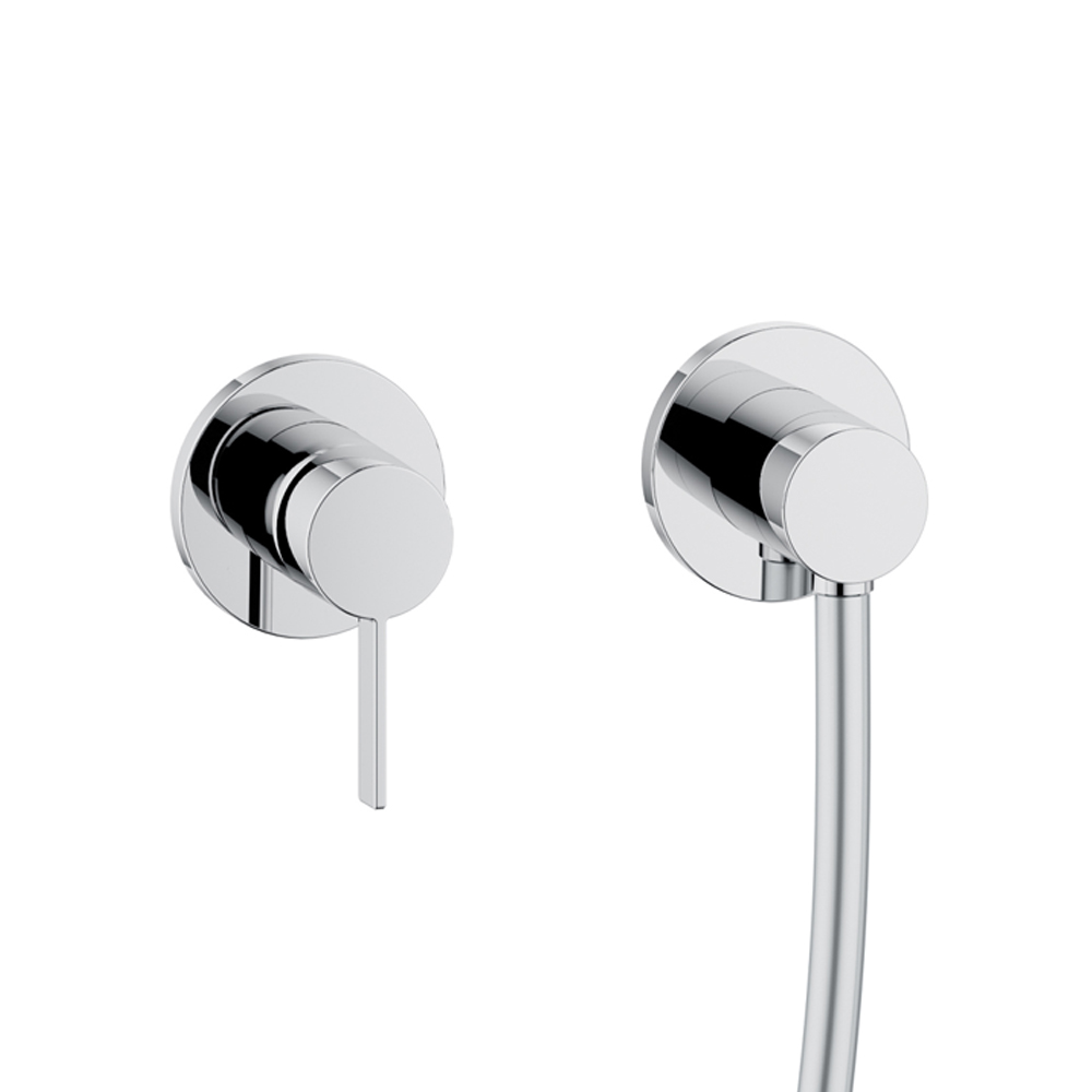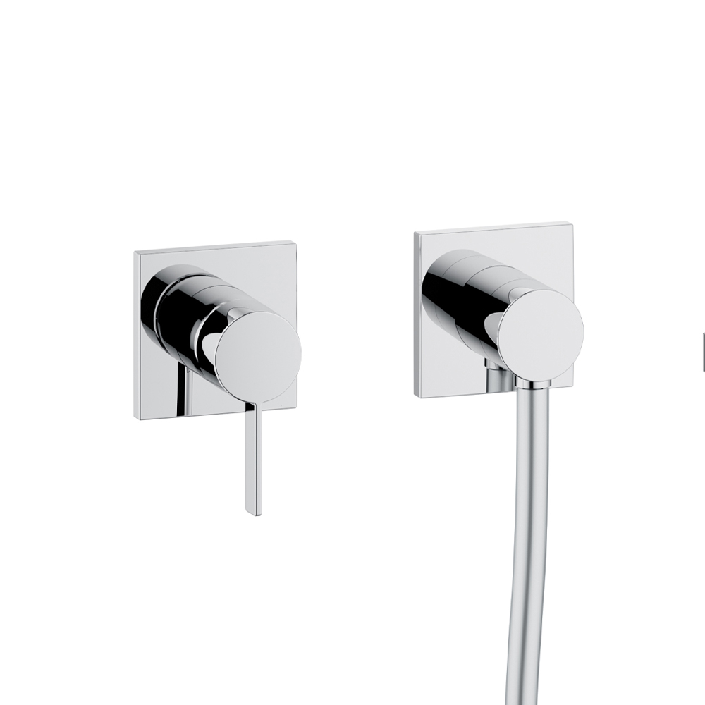 Cette cabine de douche intérieure à installation bidirectionnelle avec mitigeur monocommande, raccord de tuyau, support de douchette et pomme de douche a un design simple et minimal avec un choix de rosace ronde ou carrée et est entièrement réalisée en laiton chromé . Le résultat est un petit module caractérisé par un concentré intelligent de technologie innovante dans un design radical et minimaliste : le mélangeur et le raccord de tuyau sont connectés de manière unique pour un effort d'installation minimal et un confort fonctionnel maximal.