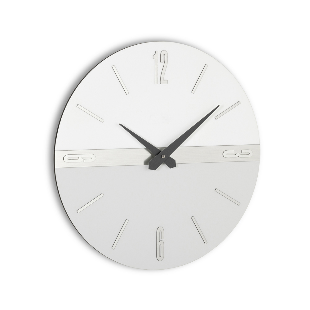 La bicolore è traversée par une bande centrale marquant 3 et 9 heures avec un style sobre et moderne. Les lignes horaires essentielles et les aiguilles subtiles ajoutent une touche de sophistication minimaliste, parfaite pour ceux qui recherchent un style élégant mais pas surfait.
