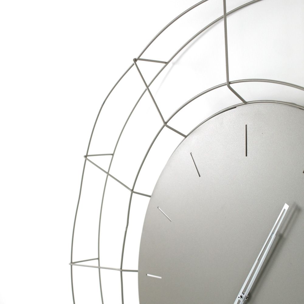 Horloge murale de cuisine en acier au design moderne, fabriquée artisanalement en Italie.