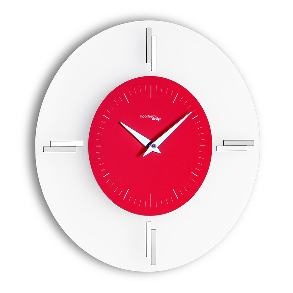Horloge murale ronde en méthacrylate et aluminium, fabriquée en Italie.