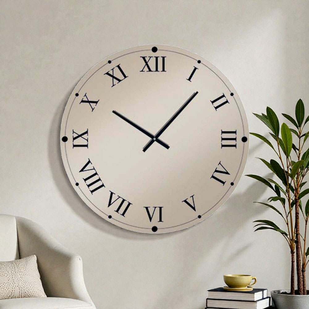 Horloge murale ronde fabriquée en Italie, en cristalmiroir , avec chiffres romains et aiguilles noires. L'utilisation d'une finition miroir fait de ce meuble la fusion parfaite entre un miroir et une véritable horloge, remplissant une fonction extrêmement utile tout en agissant comme une merveilleuse source de lumière, contribuant à agrandir optiquement les espaces. Son design se caractérise par l'élégance et la sobriété , des qualités qui donnent naissance à un objet raffiné, idéal pour les environnements modernes les plus variés, apportant une touche personnelle et créative au mobilier et rehaussant sa valeur esthétique.