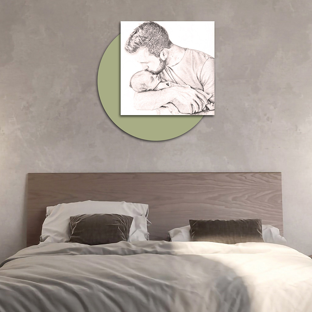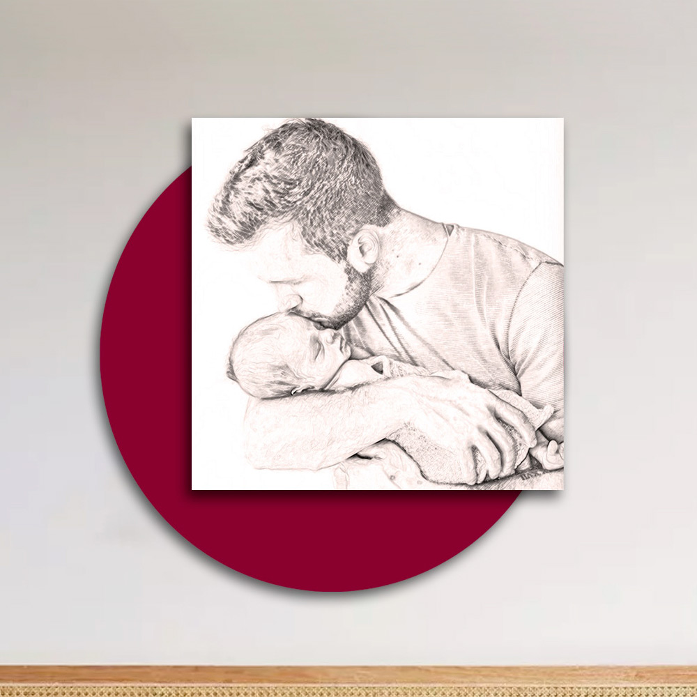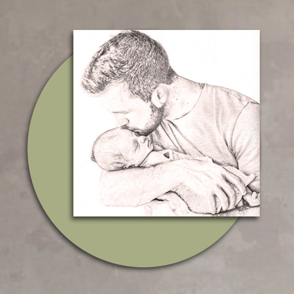 Panneau entièrement en bois avec une impression d'un homme embrassant un enfant. La délicatesse et l'affection qui naissent de ce baiser du père sur le front du fils sont uniques et touchent droit au cœur de celui qui le regarde. Les finitions, le bois choisi pour la production et la technique d'impression mettent en valeur toute la qualité d'un élément fabriqué en Italie qui se prête à compléter parfaitement l'ameublement de n'importe quel environnement, en lui donnant une atmosphère chaleureuse et accueillante.