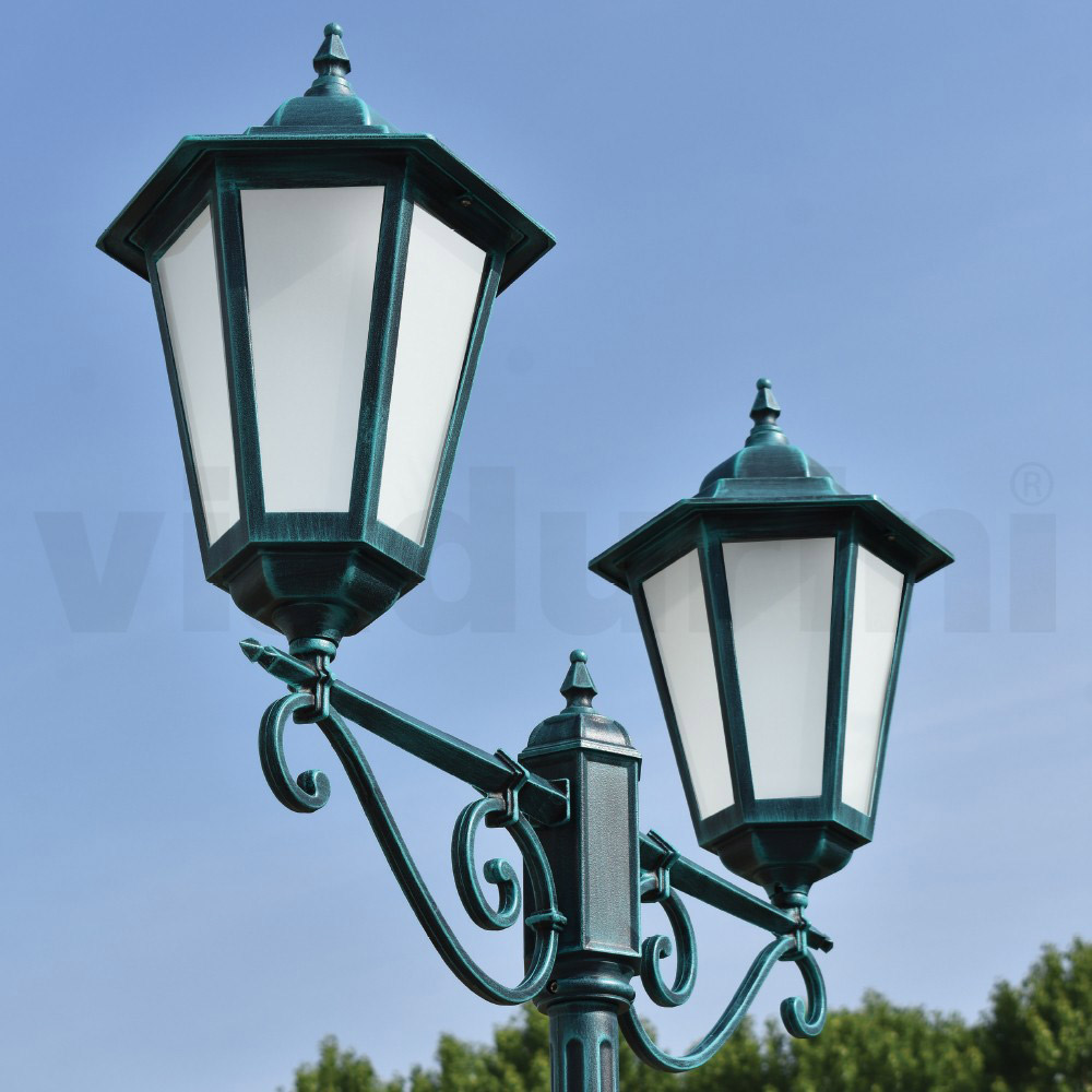 Lampadaire 2 lumières de style vintage en aluminium avec diffuseur en verre Fabriqué en Italie.