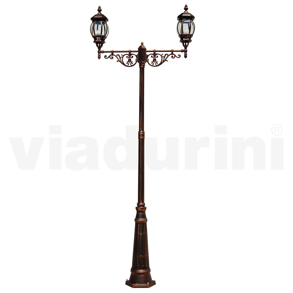 Lampadaire de style vintage à 2 lumières avec structure en aluminium Fabriqué en Italie.