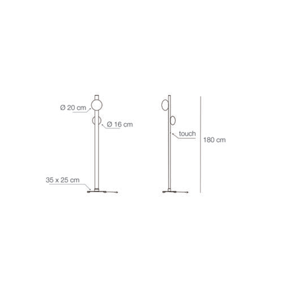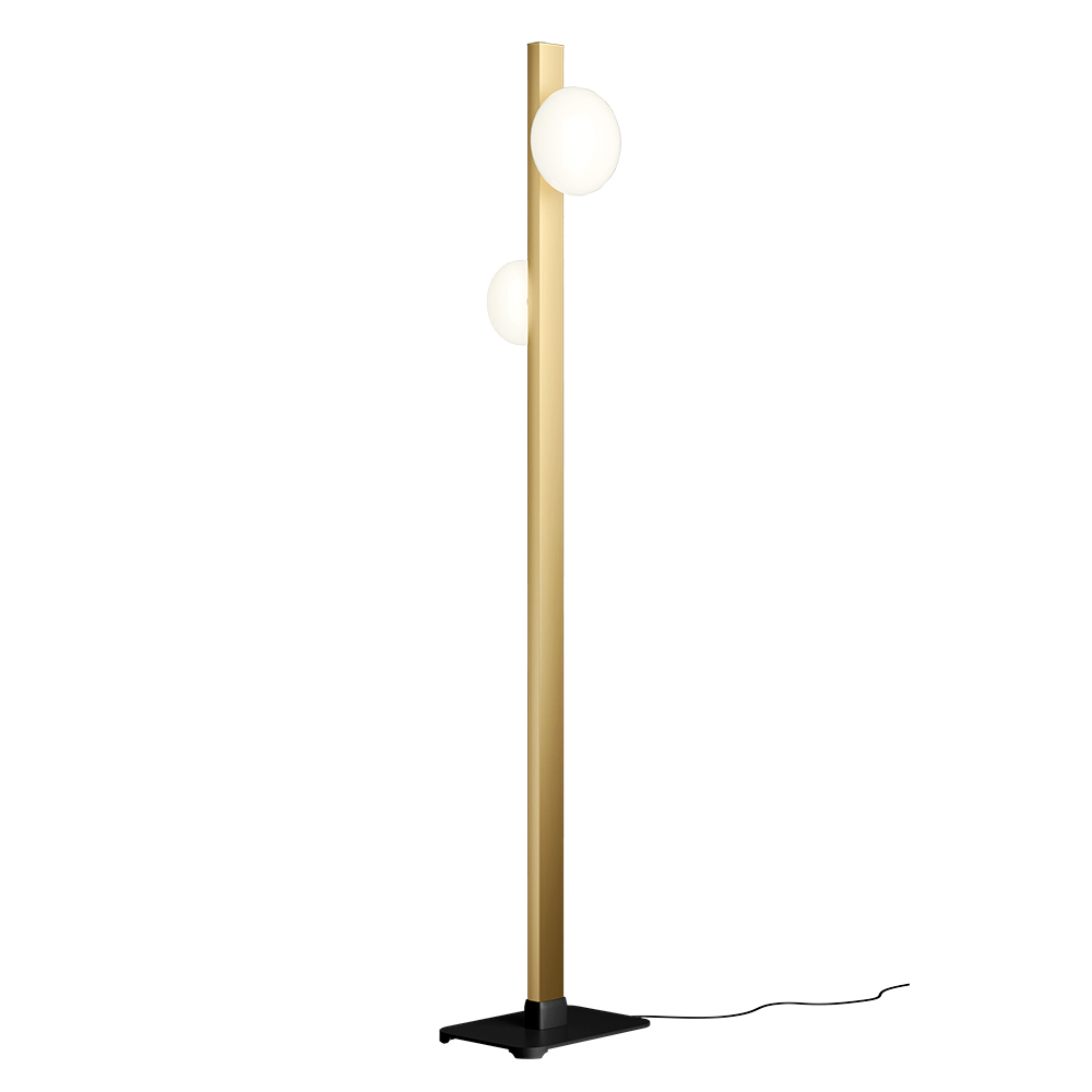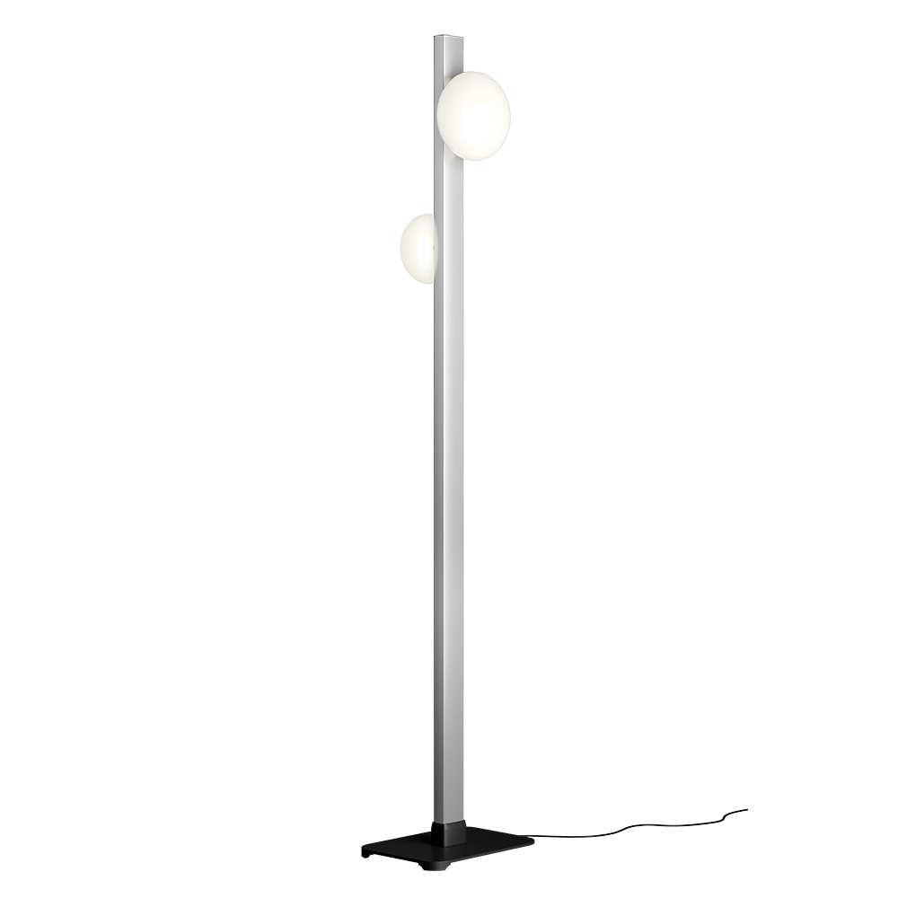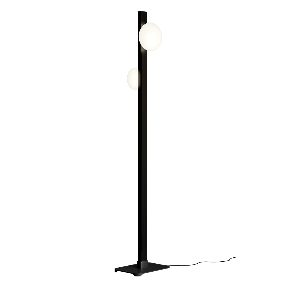 Ce lampadaire allie design sculptural et élégance fonctionnelle , idéal pour sublimer n'importe quel espace avec un style moderne et raffiné . Sa structure verticale, fine et géométrique, abrite deux diffuseurs sphériques en verre opale , suspendus en équilibre parfait, diffusant une lumière douce et enveloppante .