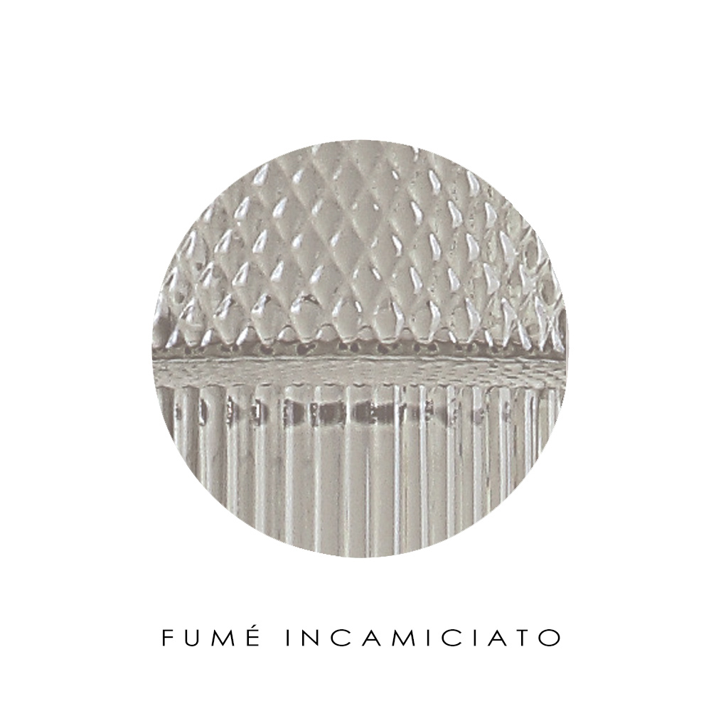 Traitement Rigata : technique de traitement qui implique l'utilisation d'un moule avec de petites lignes et une gravure en losange dans laquelle le verre est soufflé pour créer un merveilleux effet visuel et tactile.