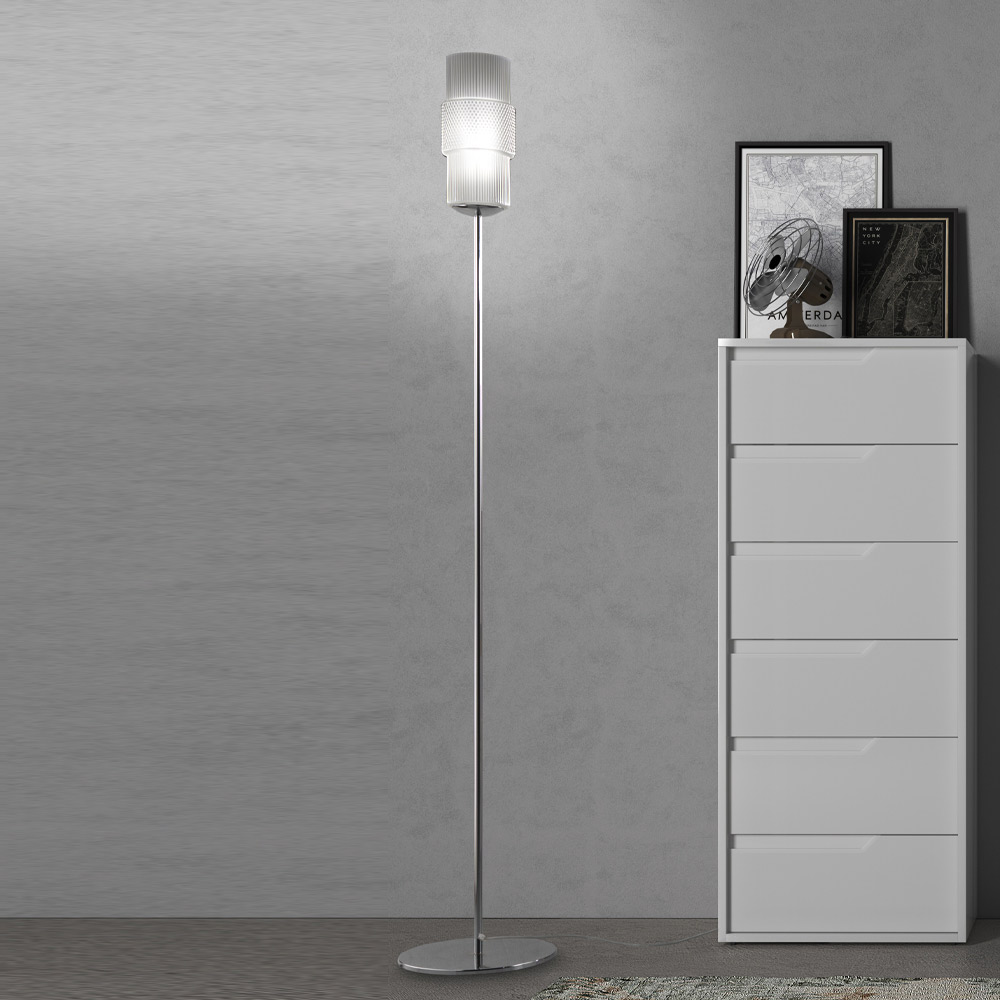 Lampadaire artisanal en verre de Venise soufflé bouche et métal chromé.