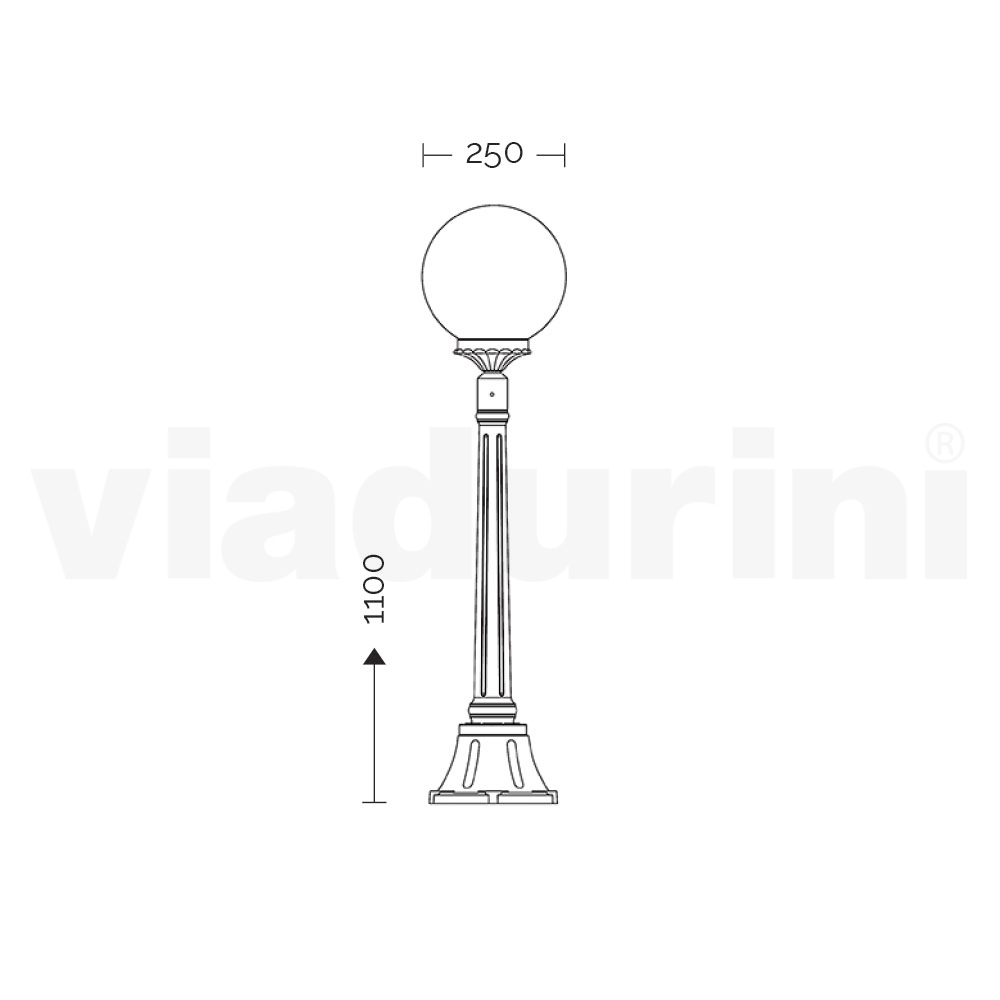 Lampe de jardin réalisée avec une structure en aluminium moulé sous pression et un diffuseur sphérique en acrylique opale , entièrement Made in Italy.
