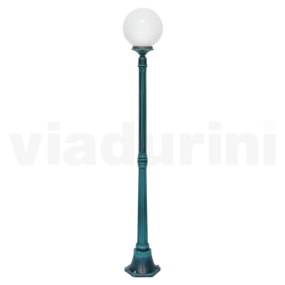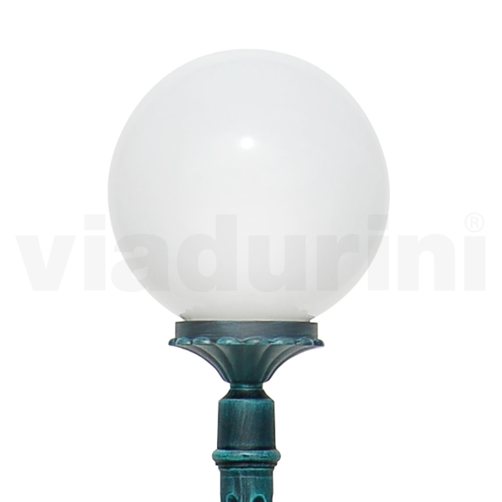 Lampe de jardin réalisée avec une structure en aluminium moulé sous pression et un diffuseur sphérique en acrylique opale , entièrement Made in Italy.