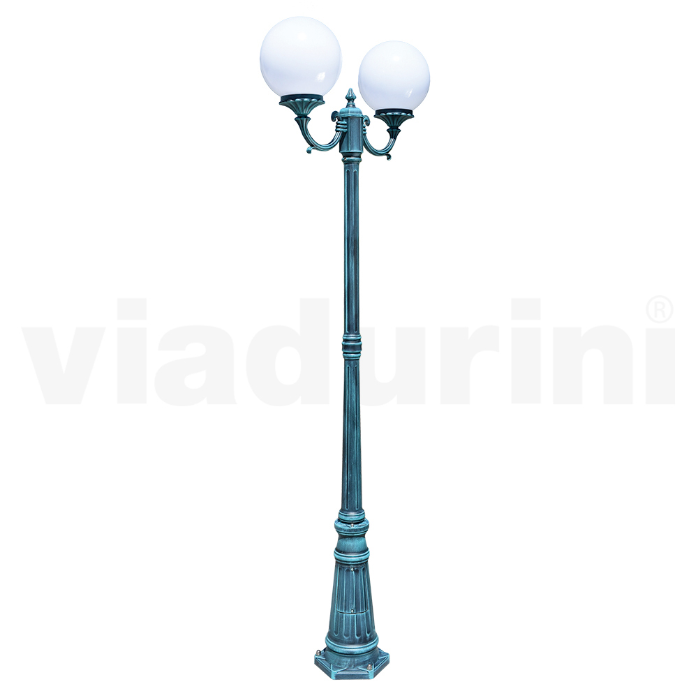 Lampe de jardin réalisée avec une structure en aluminium moulé sous pression et un diffuseur sphérique en acrylique opale , entièrement Made in Italy.
