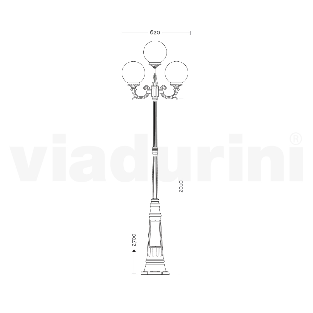 Apportez une touche d'élégance classique à votre espace extérieur avec ce lampadaire extérieur en fonte d'aluminium . La construction raffinée en aluminium de qualité supérieure promet une résistance inégalée aux conditions météorologiques, vous assurant ainsi une solution d'éclairage durable et intemporelle. Ce lampadaire diffuse une lumière équilibrée et homogène, parfaite pour les allées, jardins ou terrasses. La finition se fond harmonieusement dans le paysage naturel, ajoutant une touche de noblesse et de tradition au contexte dans lequel elle est placée. Ce lampadaire n'est pas simplement un objet fonctionnel, mais un véritable symbole de style et de raffinement , capable de transformer n'importe quel extérieur en un lieu enchanté et accueillant.