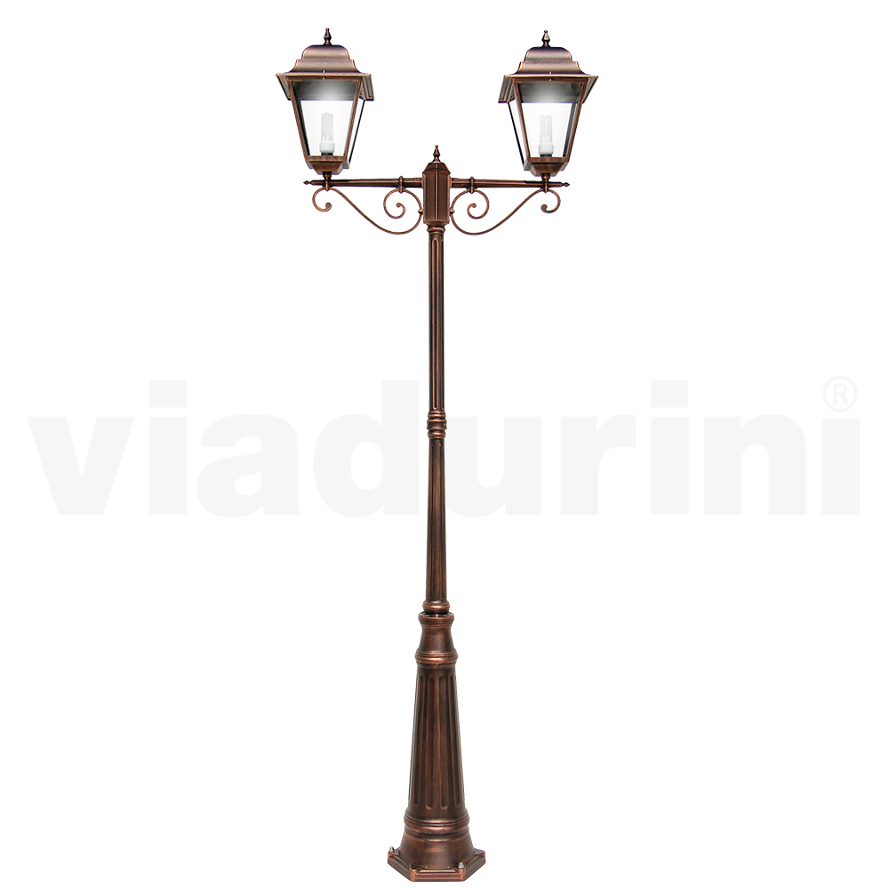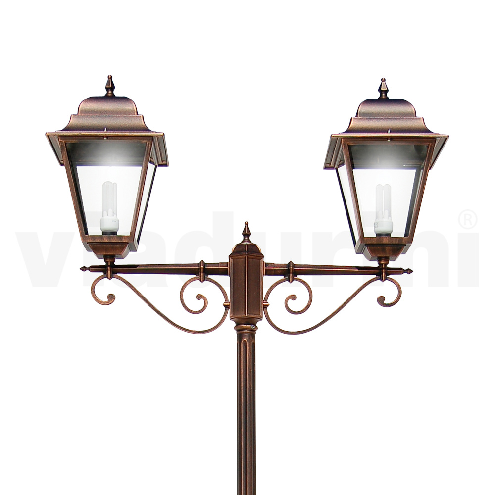 Incorporez une touche de grâce classique à votre espace extérieur avec ce lampadaire. Fabriqué en aluminium moulé sous pression robuste, il se démarque par sa durabilité exceptionnelle et sa capacité à résister aux éléments avec élégance. La finition met en valeur n’importe quel jardin ou allée, diffusant une chaleur visuelle aussi accueillante que charmante. Les 2 dômes supérieurs et le verre s'assemblent pour créer une répartition optimale de la lumière, tandis que les détails artisanaux confèrent à la pièce un caractère distinctif et un charme antique. Qu'il soit placé le long d'une allée romantique dans le jardin ou comme point d'accueil à l'entrée, ce lampadaire n'est pas simplement un élément fonctionnel mais un véritable symbole de style et de qualité.