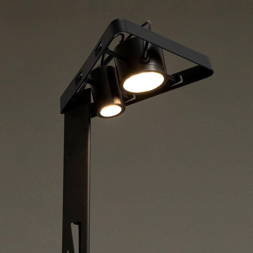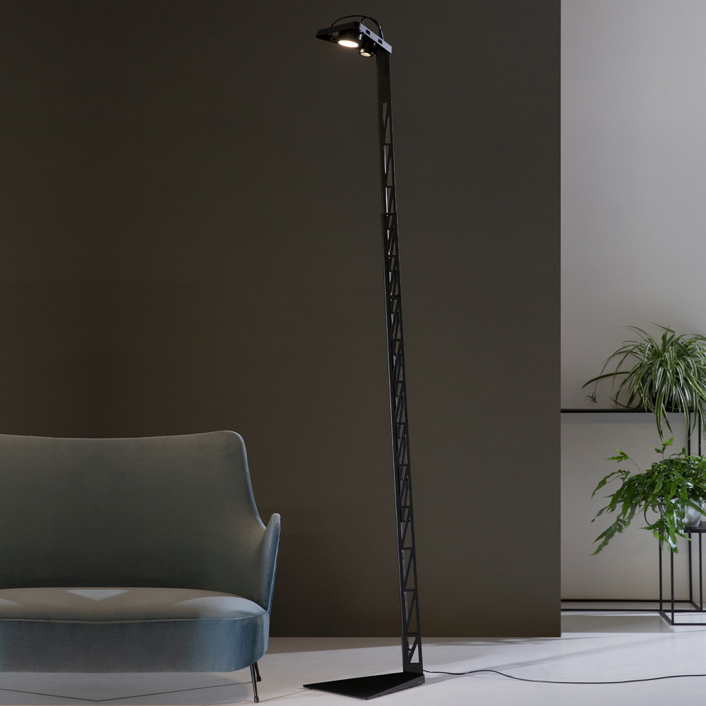 Ce lampadaire original et unique présente un design de style moderne et industriel et se distingue par sa capacité à s'étendre en hauteur.