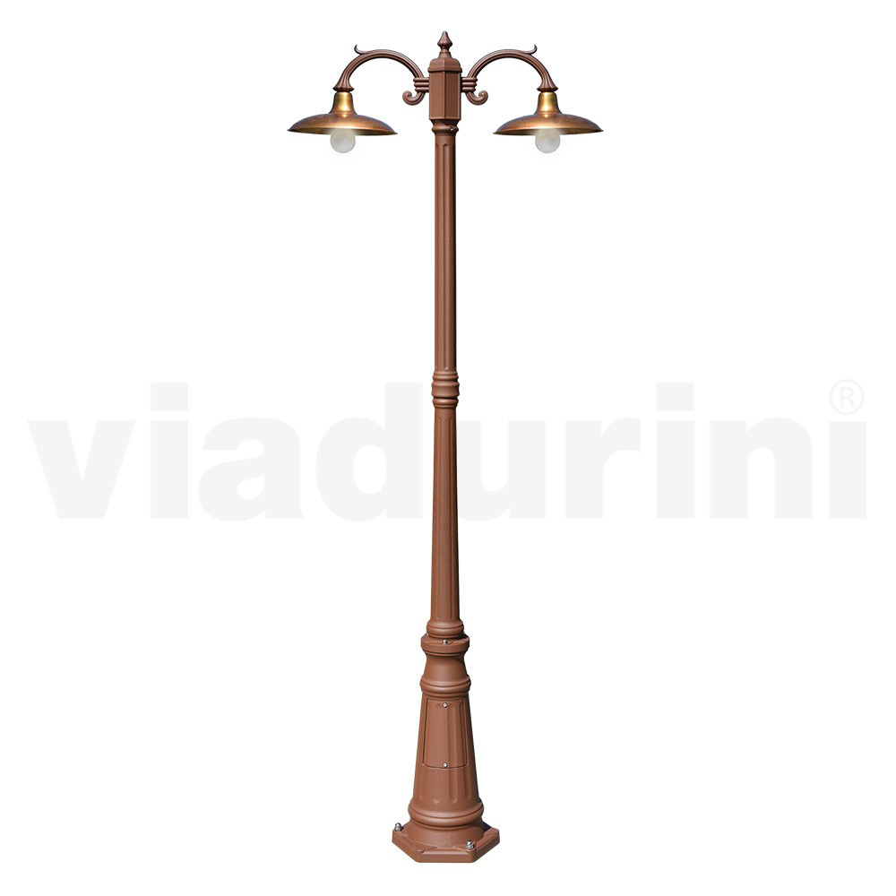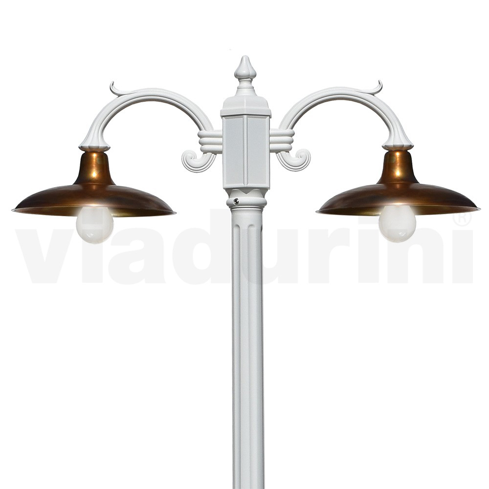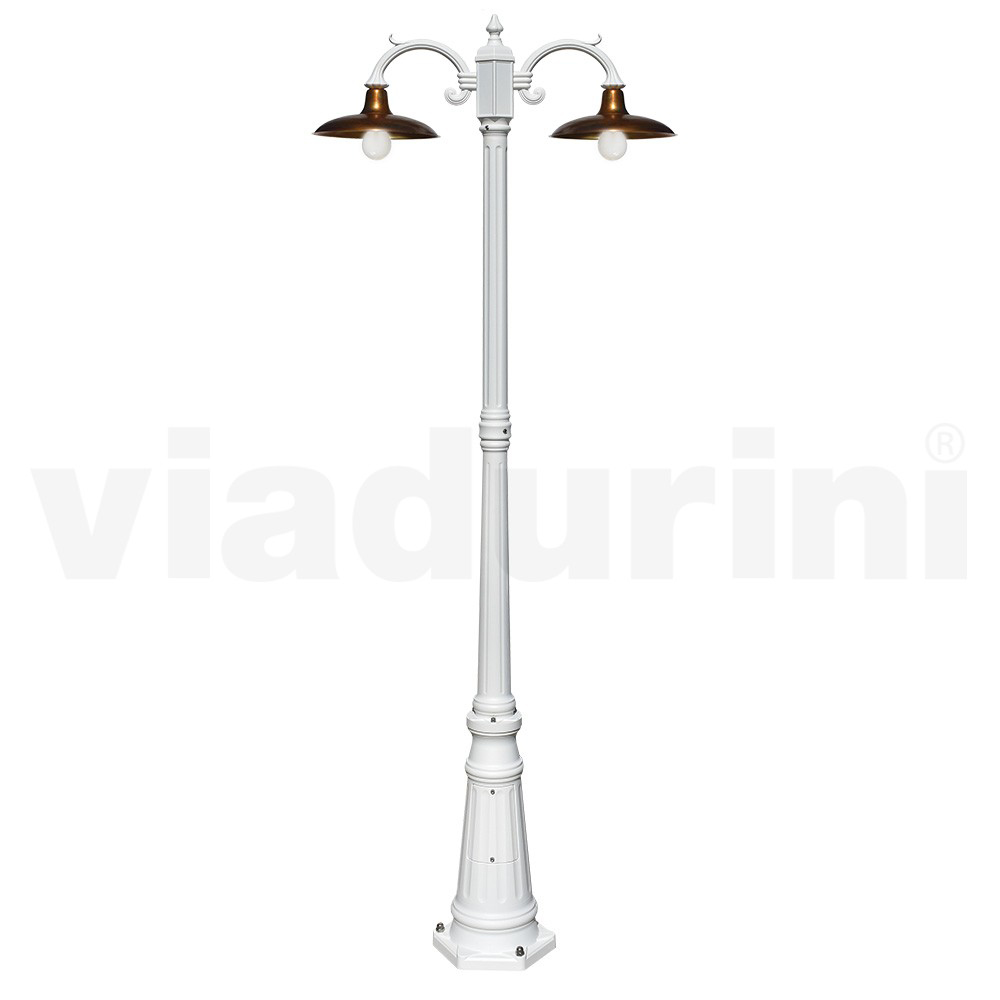 Lampadaire 2 lumières de style vintage en aluminium avec diffuseur en laiton Fabriqué en Italie.