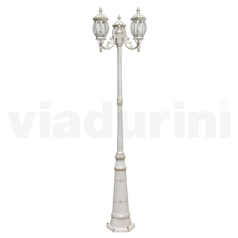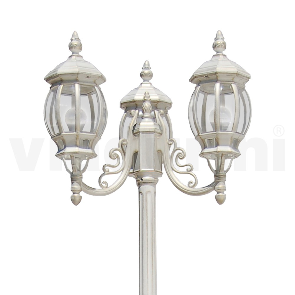 Lampe de jardin vintage 3 lumières en aluminium et polycarbonate Made in Italy.