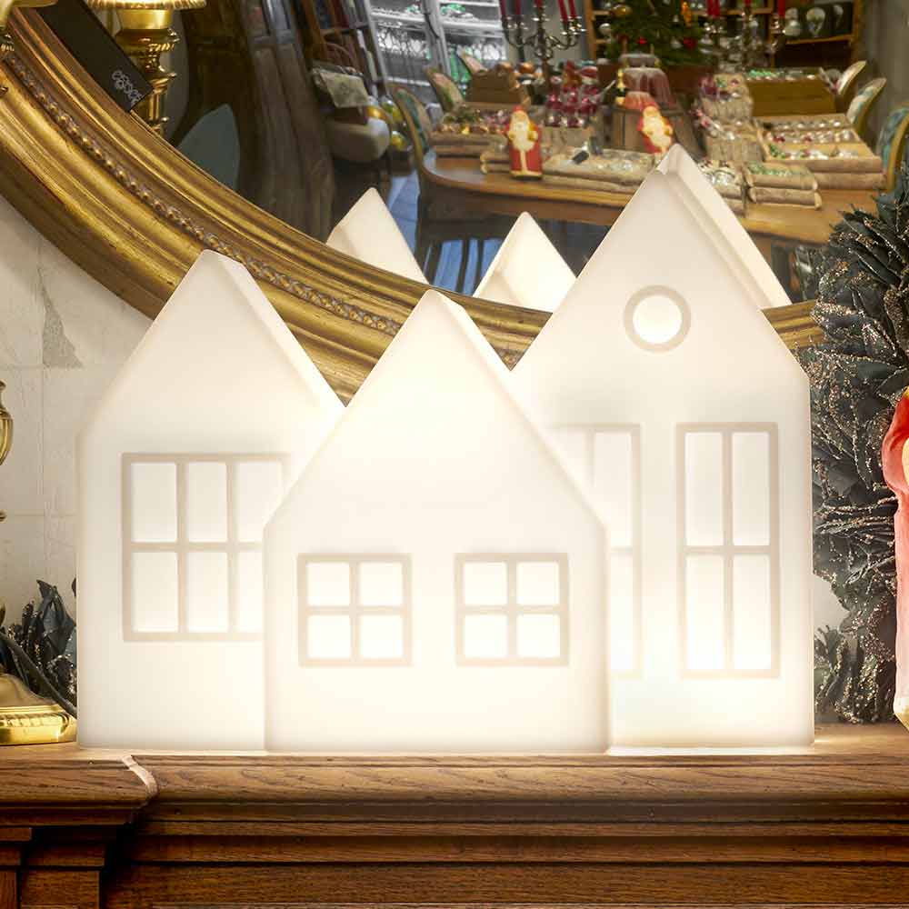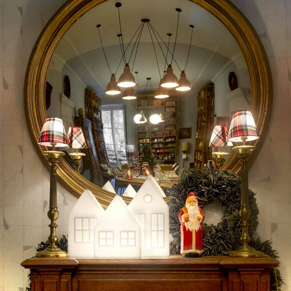 lampe à poser contribue à créer l'esprit de Noël grâce à son design en forme de crèche à forte âme contemporaine, qui rappelle le style classique des paysages scandinaves typiques.