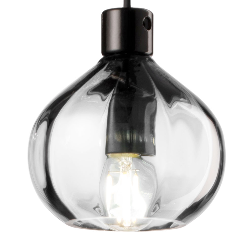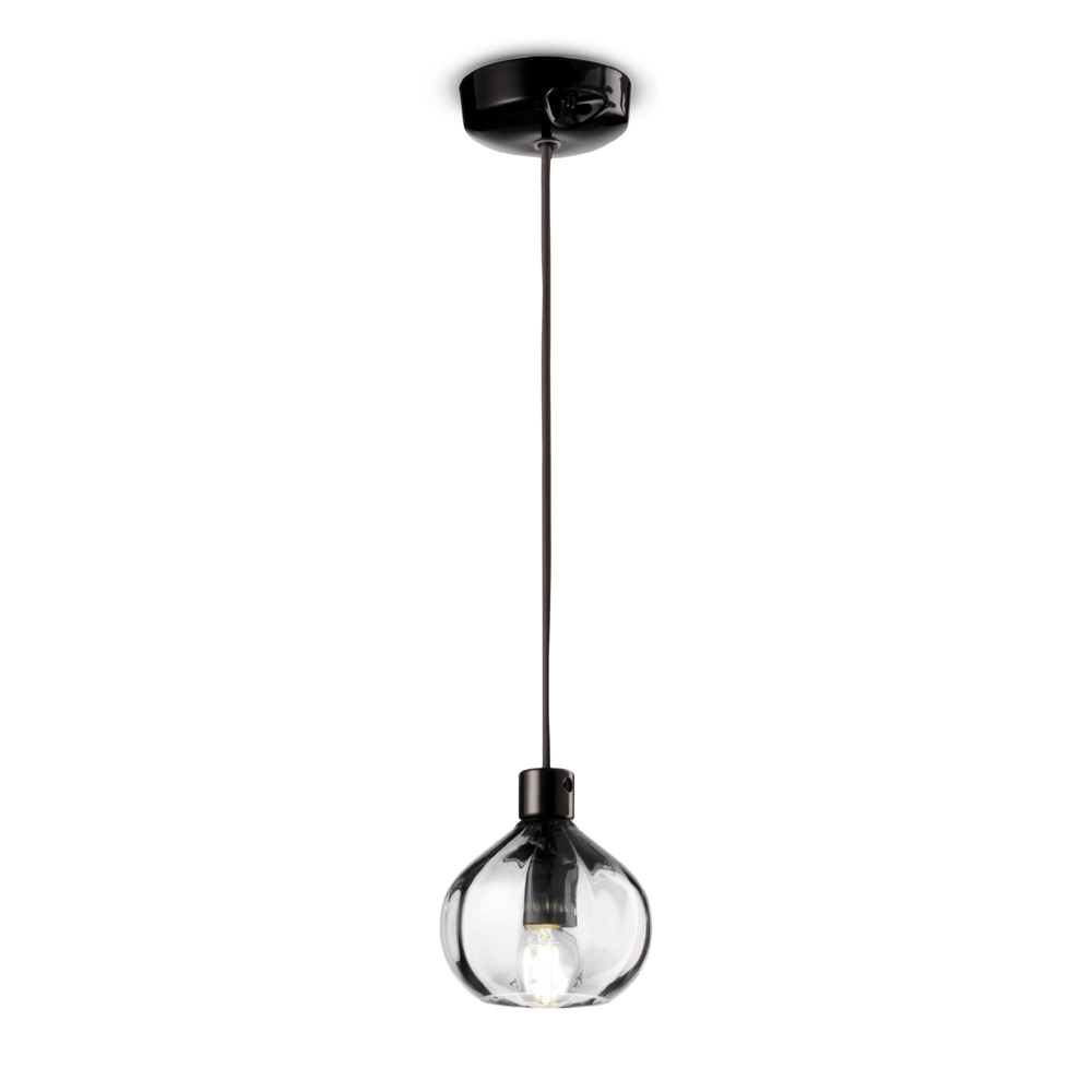 Cette suspension est l'essence même de la transparence avec une touche de modernité. Le verre, de nature pure et intemporelle, est ici façonné en une sphère qui capte et reflète la lumière, créant un jeu de luminosité et d'ombres qui ajoute du dynamisme à l'environnement. La version ambrée, avec sa teinte chaleureuse et accueillante, est parfaite pour créer des ambiances intimistes et détendues. La variante transparente libère cependant une lumière cristalline, idéale pour éclairer avec une touche de classe minimaliste.