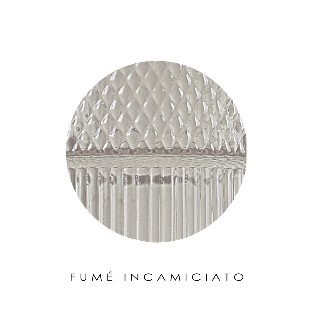 Traitement Rigata : technique de traitement qui implique l'utilisation d'un moule avec de petites lignes et une gravure en losange dans laquelle le verre est soufflé pour créer un merveilleux effet visuel et tactile.