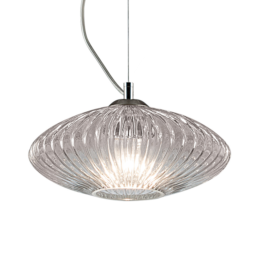 Lampe à suspension en verre vénitien soufflé à la bouche avec traitement nervuré.
