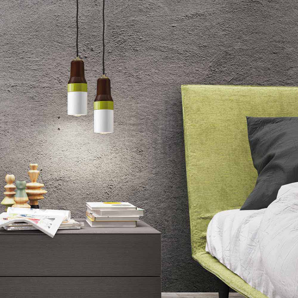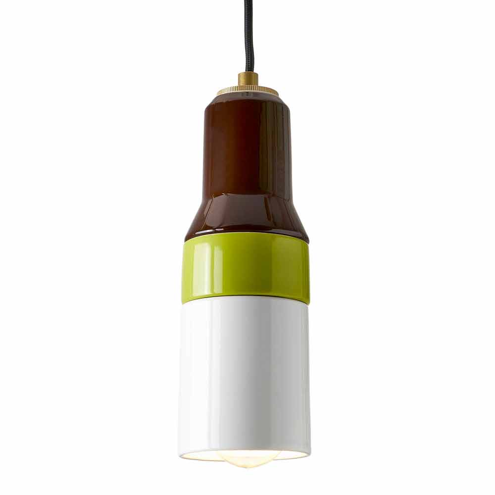 Lampe à suspension moderne en laiton et céramique Asia made in Italy La suspension Asia est caractérisée par un design ultramoderne et à la mode. Fabriqué en céramique marron, verte et blanche avec câble noir et serre-câble en laiton.
