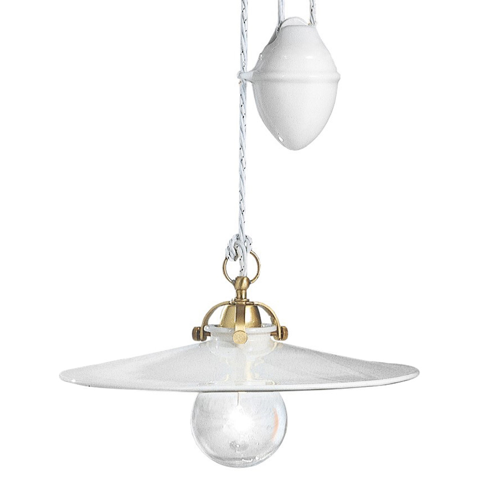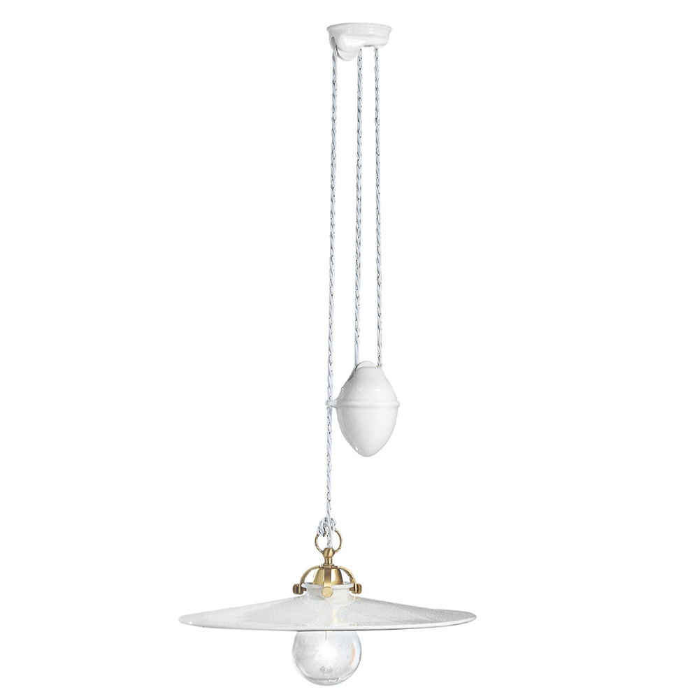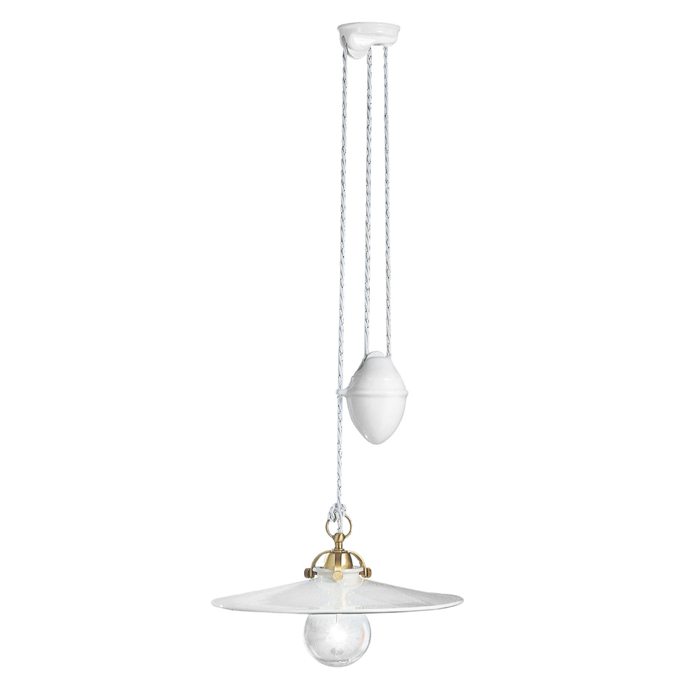 La lampe à suspension avec rail coulissant est entièrement en fer et en céramique brillante , matériaux qui mettent en valeur le savoir-faire et les savoir-faire manuels des artisans.