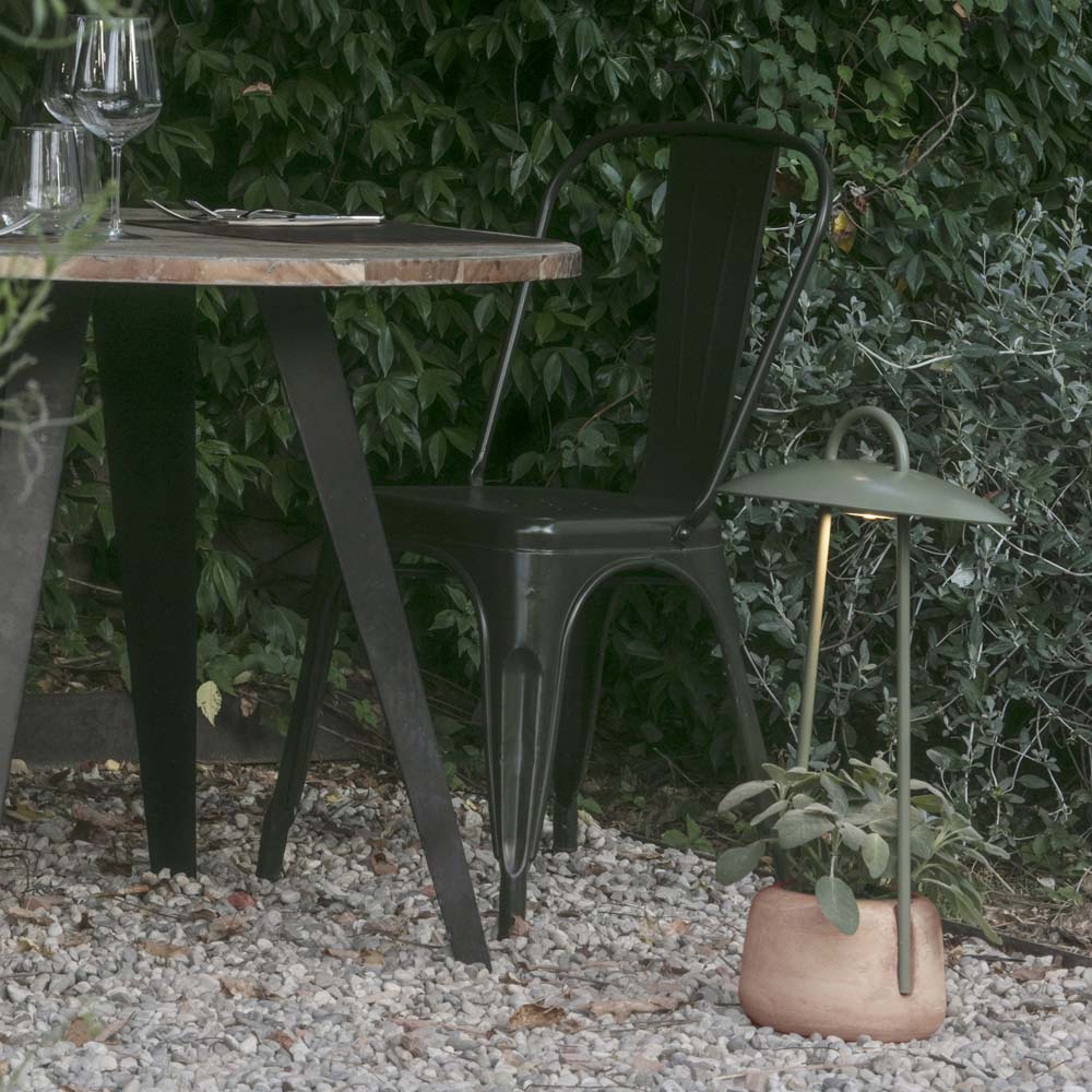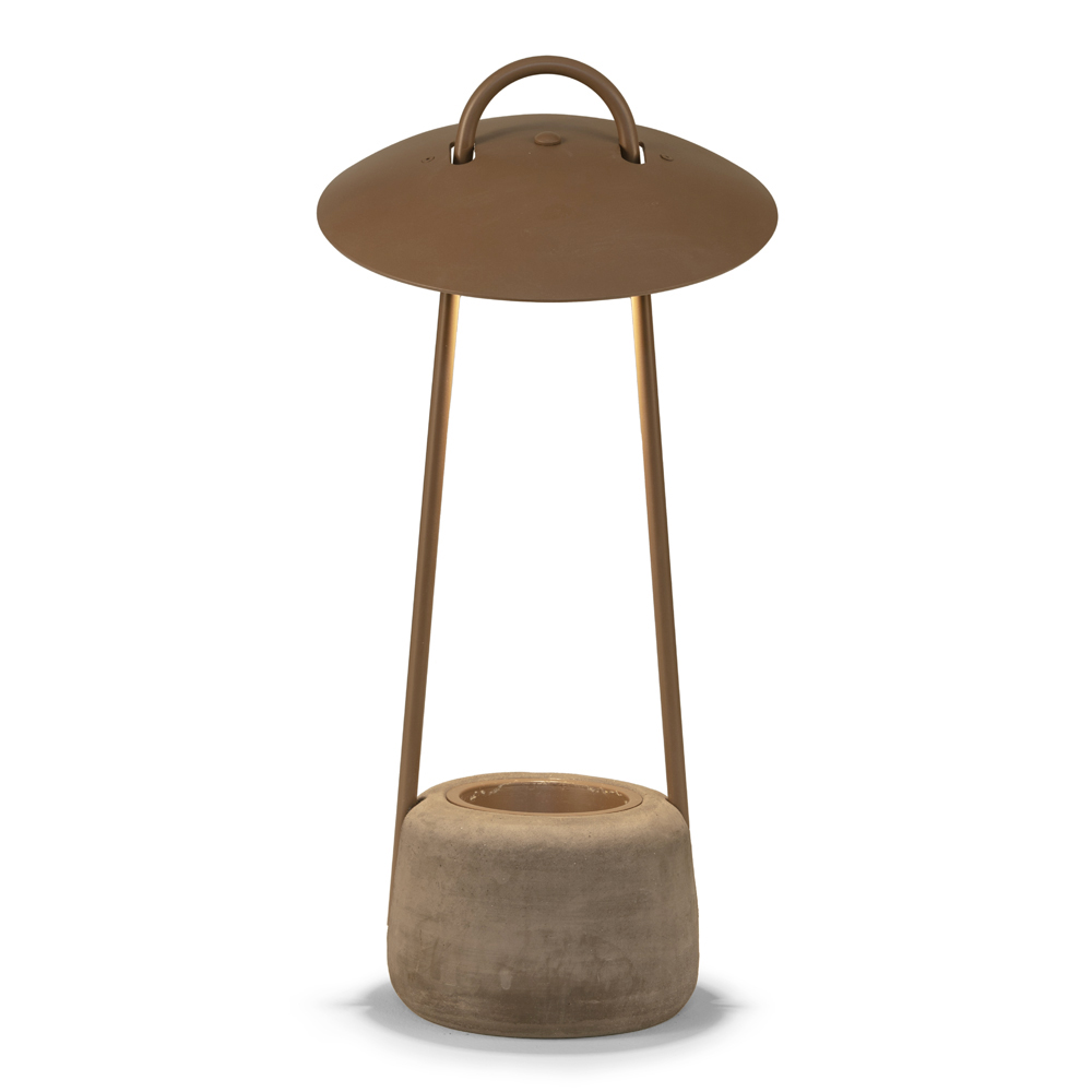 Le design simple mais raffiné, avec une base en argile qui fait office de vase, s'associe parfaitement à l'élégante structure métallique qui soutient un abat-jour minimaliste. Cette combinaison illumine non seulement votre environnement mais crée également un coin vert, idéal pour les petites plantes ou les herbes aromatiques.