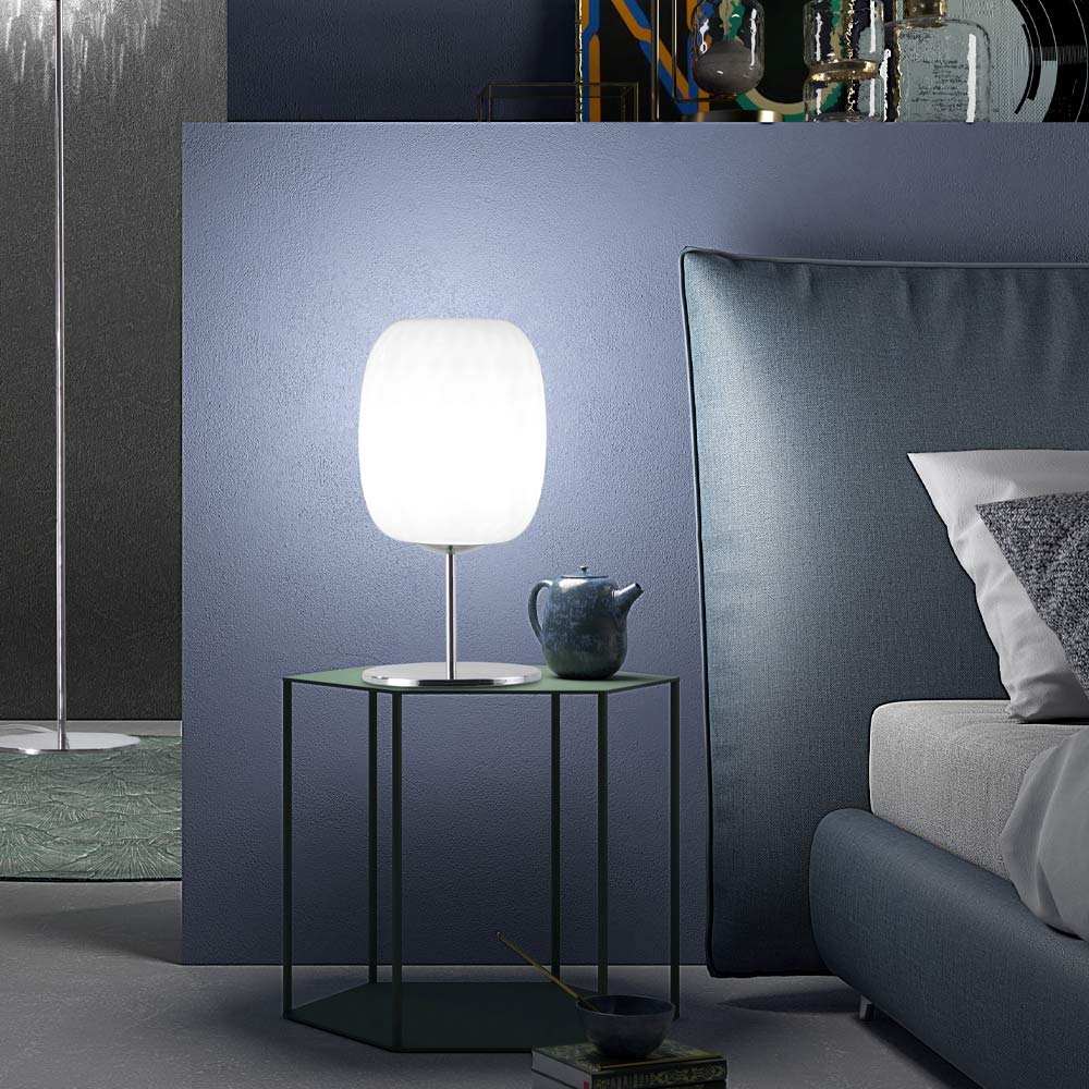 Lampe à poser en verre de Venise soufflé bouche travaillé selon la technique Balloton.