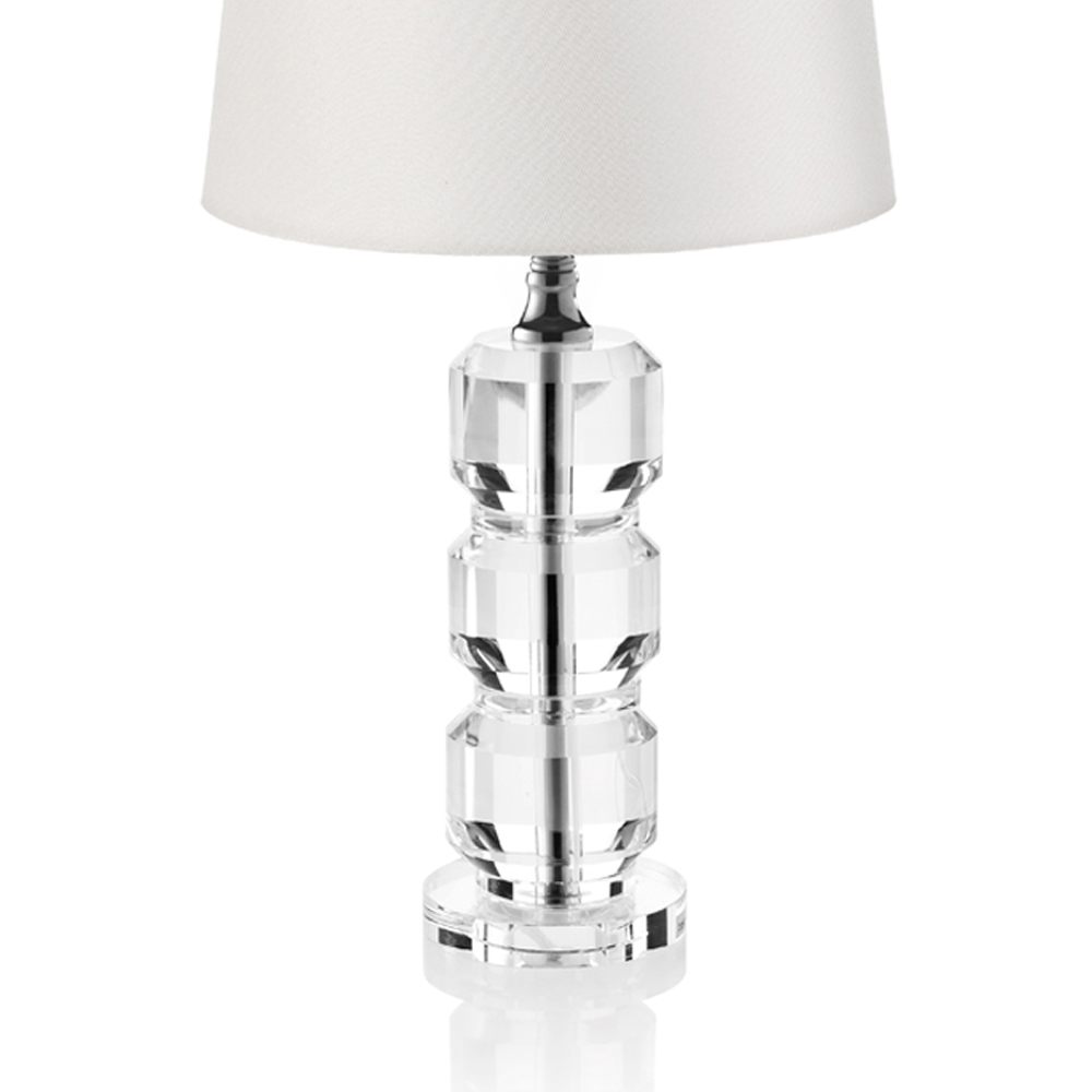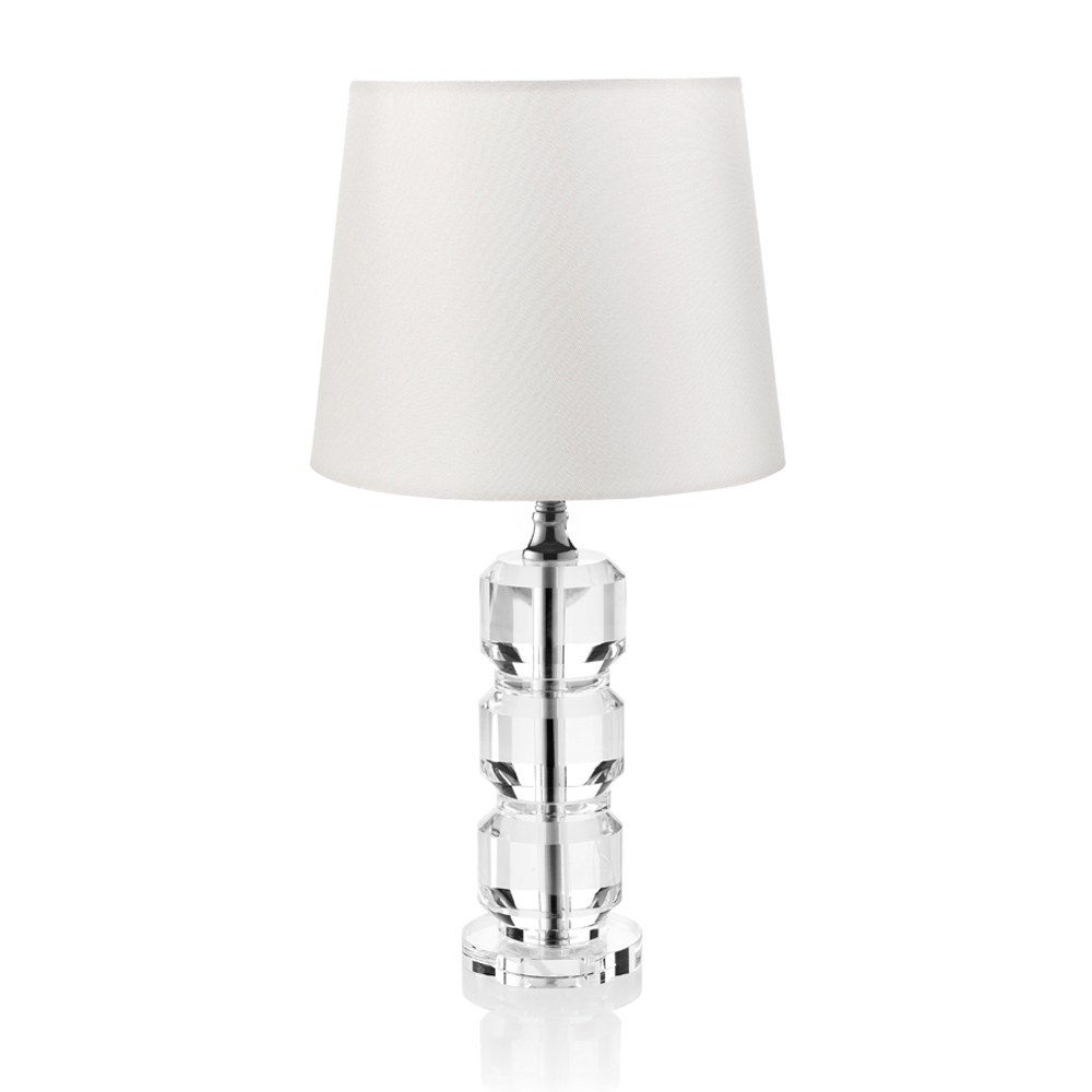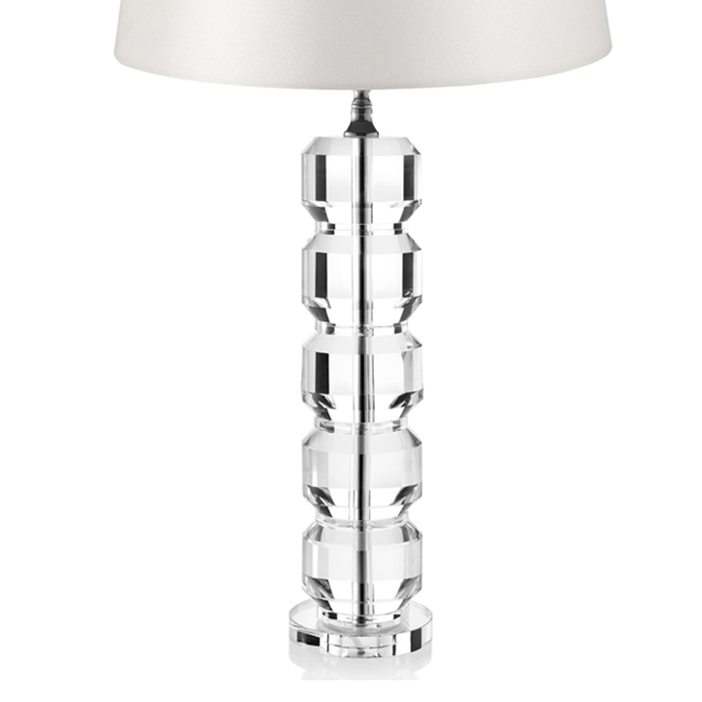 Lampe de table design classique en cristal avec abat-jour cylindrique.