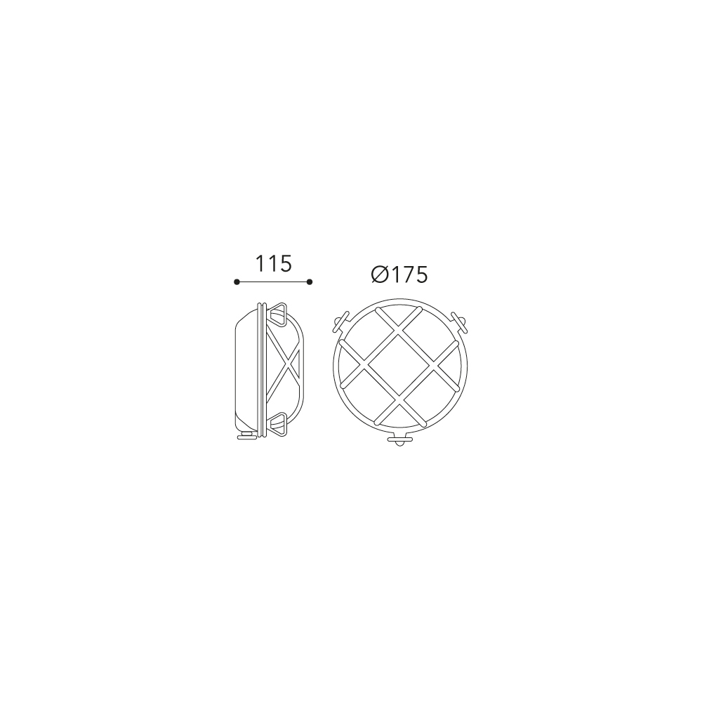 Le diffuseur rond en verre opale est protégé par une grille métallique robuste qui évoque l'univers nautique et industriel, tout en garantissant sécurité et durabilité . La lumière, à la fois fonctionnelle et enveloppante , est idéale pour illuminer façades , entrées , escaliers extérieurs et espaces extérieurs .