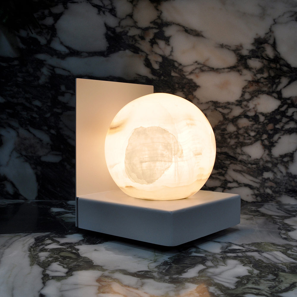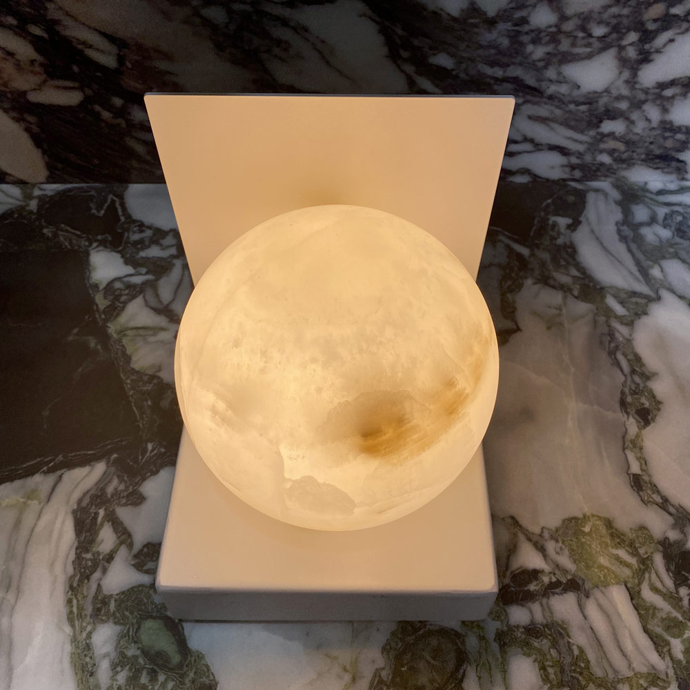 Cette lampe sphère en marbre est une déclaration de style et de chaleur, parfaite pour ceux qui souhaitent ajouter une atmosphère intime et accueillante à n'importe quel environnement. La forme sphérique en marbre translucide dégage une lumière douce et diffuse , projetant sur les murs les motifs délicats de ses veines naturelles.