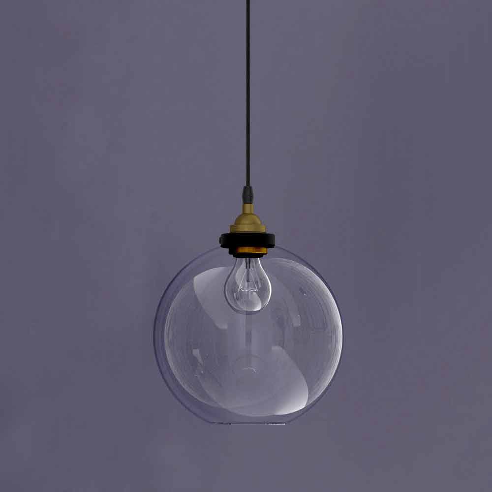 Lampe à suspension design en verre transparent et métal Made in Italy.