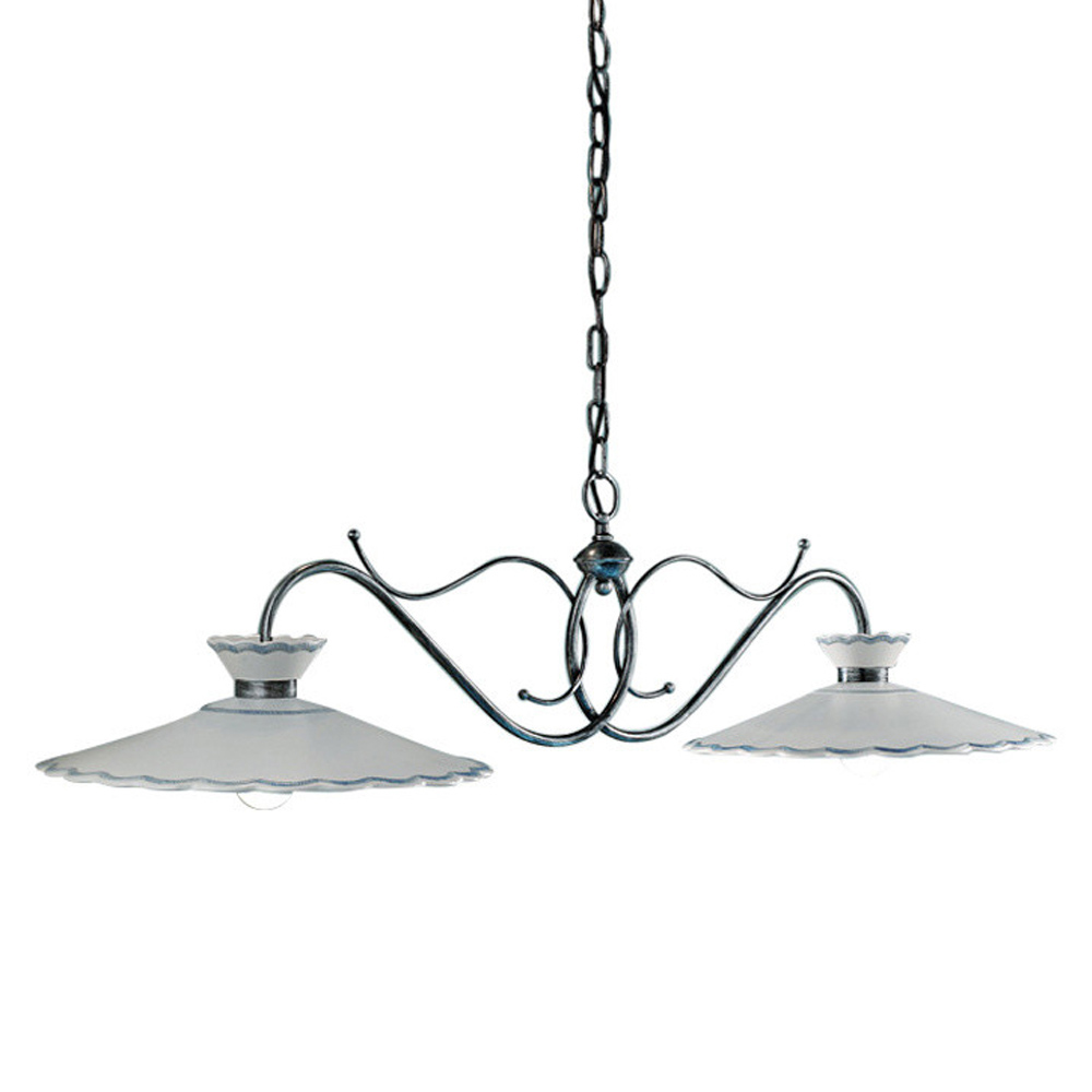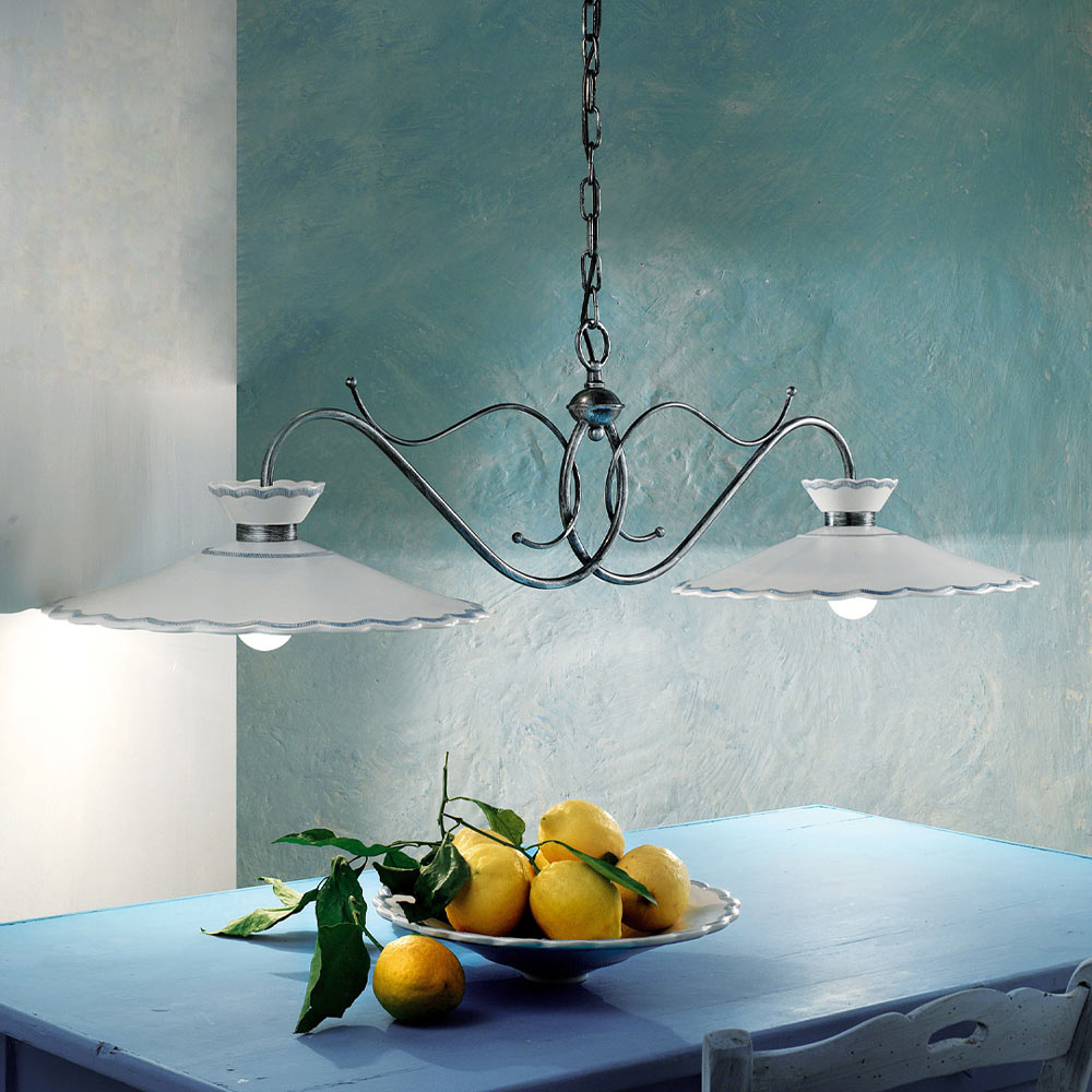Suspension artisanale à 2 lumières en métal et céramique avec effet de broderie, 2 tailles fabriquées en Italie par Ferroluce.