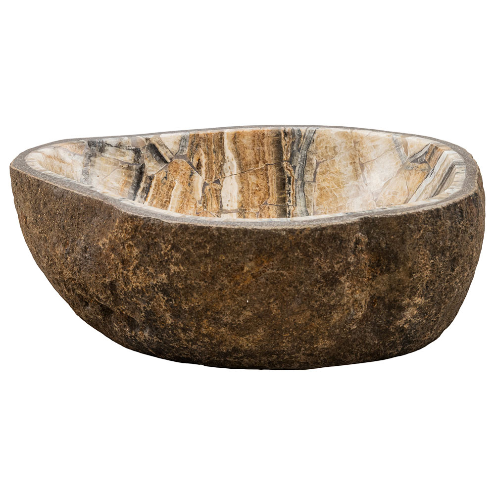 Lavabo à poser design fabriqué à la main en pierre de rivière, Palata