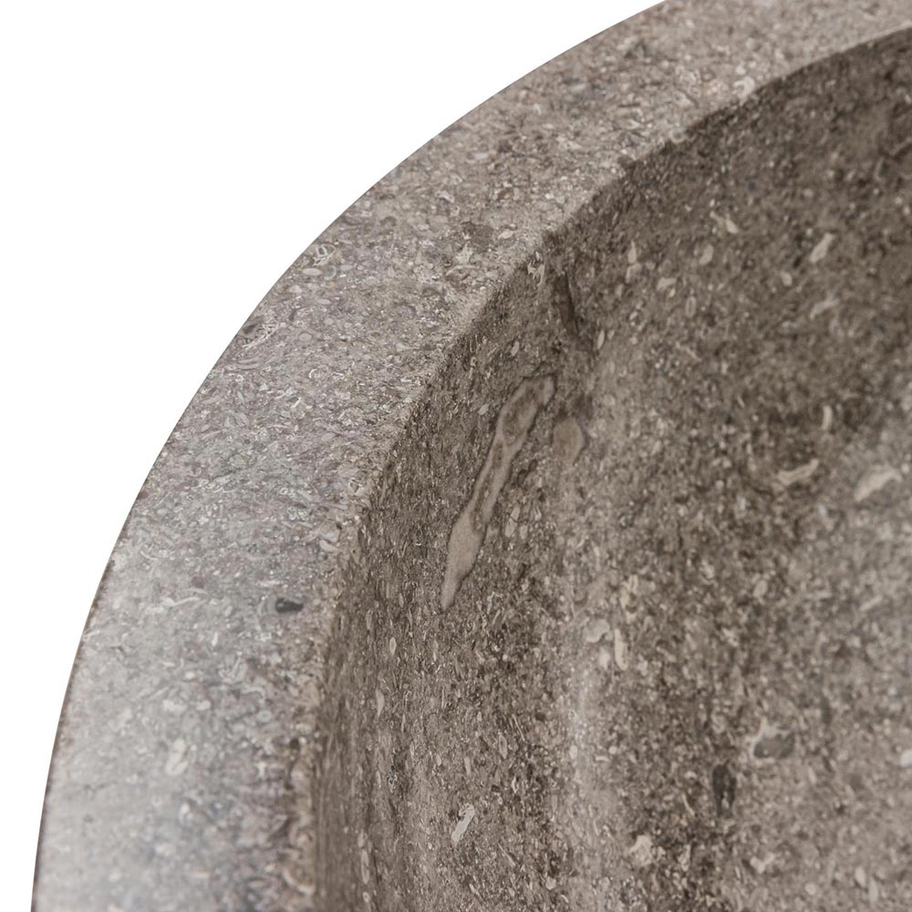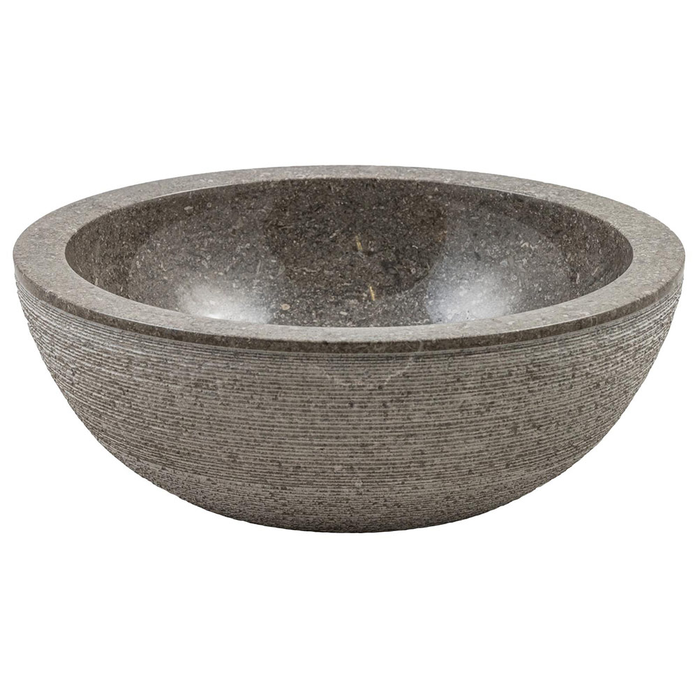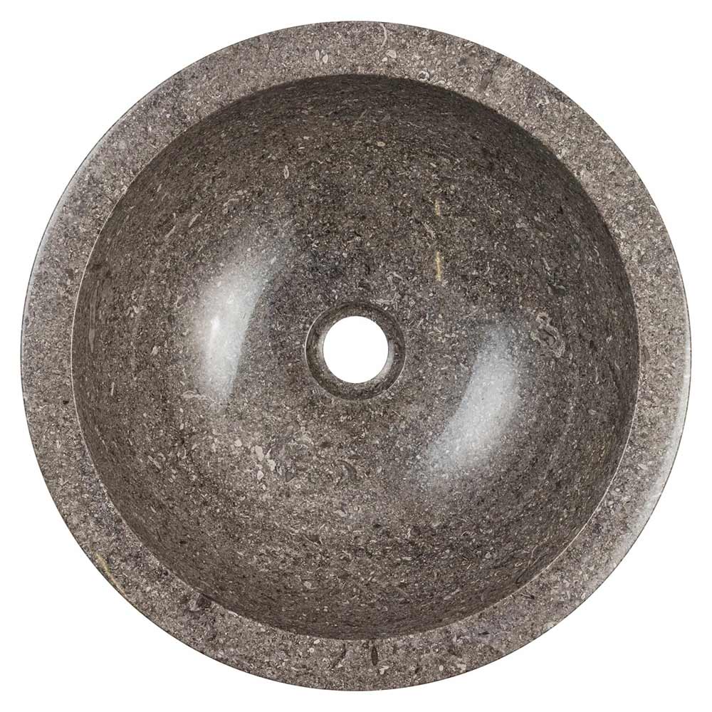Bucine est un magnifique évier de comptoir circulaire fait à la main en marbre gris.
