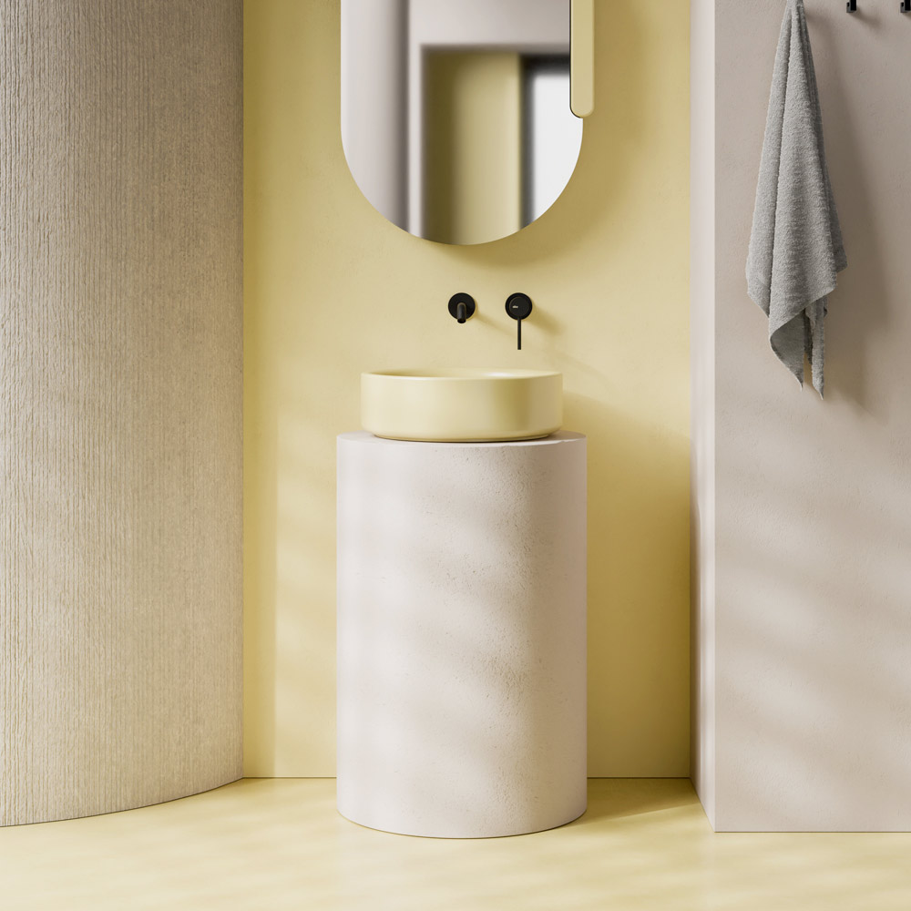Son bord légèrement épais lui confère solidité et présence, tandis que la surface lisse rehausse sa luminosité, ce qui en fait un véritable point focal de la décoration de la salle de bain.
