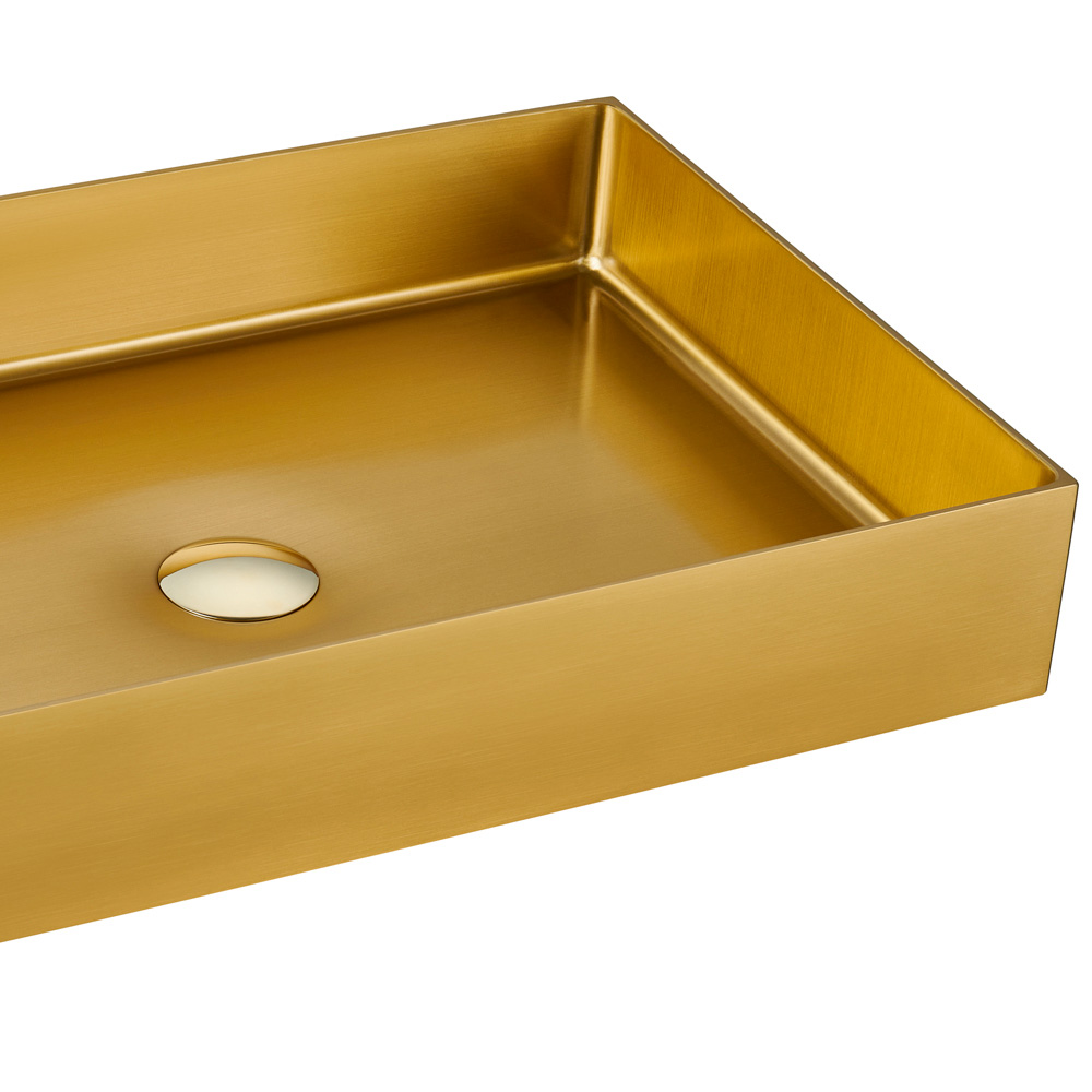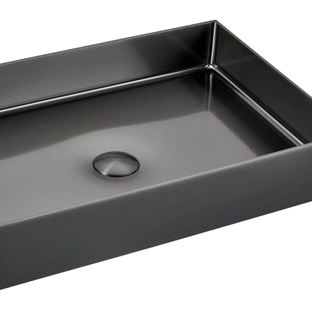 L' évier rectangulaire à poser en acier inoxydable SUS 304 de 3 mm est un bijou de design et de fonctionnalité. Fabriqué à partir d’une seule feuille de métal, il offre une esthétique épurée et moderne. Le traitement de finition du revêtement PVD+Nano , associé à un brossage minutieux, donne un aspect attrayant et presque énigmatique à l'objet, renforçant la brillance et la résistance aux taches et aux rayures. Le design se caractérise par des formes équilibrées et des proportions idéales, disponibles en trois finitions qui s'adaptent avec élégance à n'importe quel environnement. De plus, des détails raffinés tels que le couvercle de drain coordonné inclus et l'absence totale de soudures visibles élèvent cet évier au rang de véritable chef-d'œuvre d'artisanat et de design, ce qui en fait une pièce remarquable pour les salles de bains au goût luxueux et contemporain .