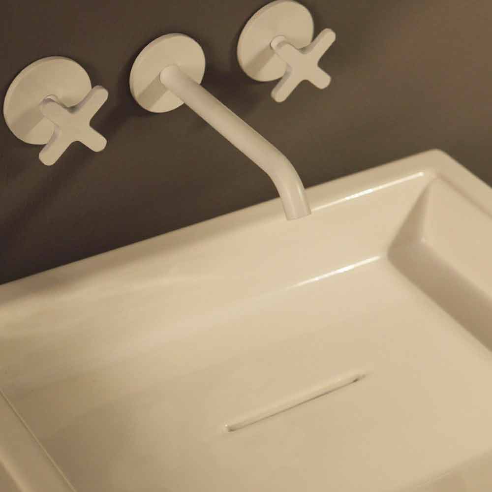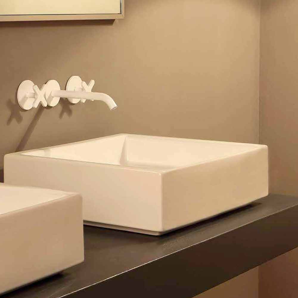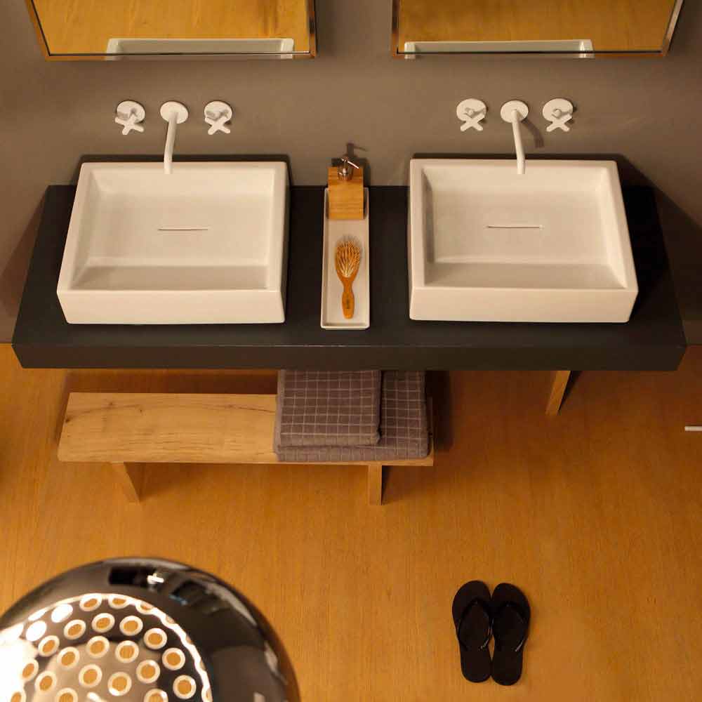 Lavabo à poser rectangulaire design en céramique fabriqué en Italie Dalia Lavabo de design rectangulaire moderne inspiré des anciennes fontaines publiques avec évacuation d'eau continue.