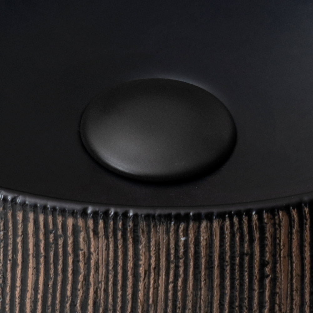 L'intérieur est fini avec un émail noir mat ou nacré mat , en élégant contraste avec la surface extérieure laissée naturelle , mettant en valeur l'authenticité du matériau et le savoir-faire.
