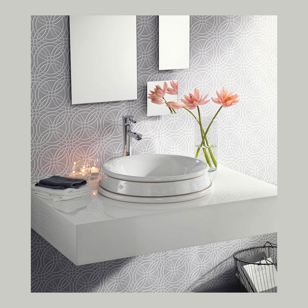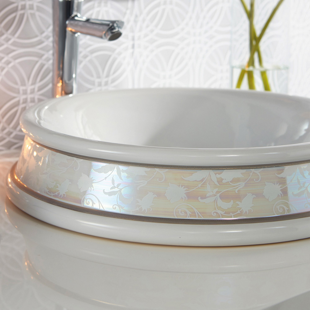 Lavabo semi-encastré en terreréfractaire avec dentelle brodée ton sur ton , entièrement Made in Italy. La forme et la finition de ce produit ont été conçues pour décorer la salle de bain avec des meubles élégants et impressionnants, uniques en leur genre. La qualité et la fonctionnalité typiques d'un produit Made in Italy n'ont pas été négligées en choisissant les meilleurs matériaux et en confiant la production à des artisans italiens experts.