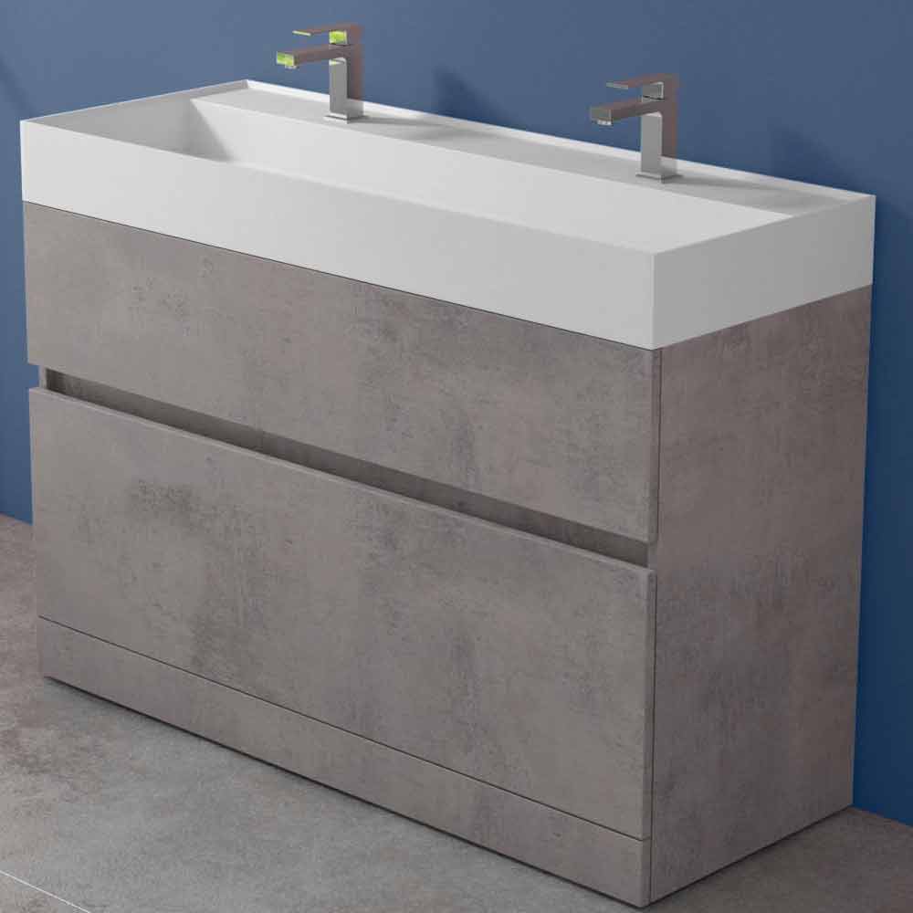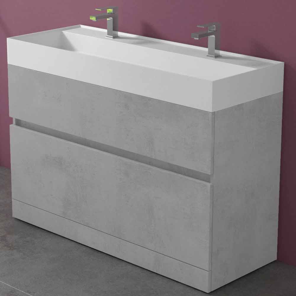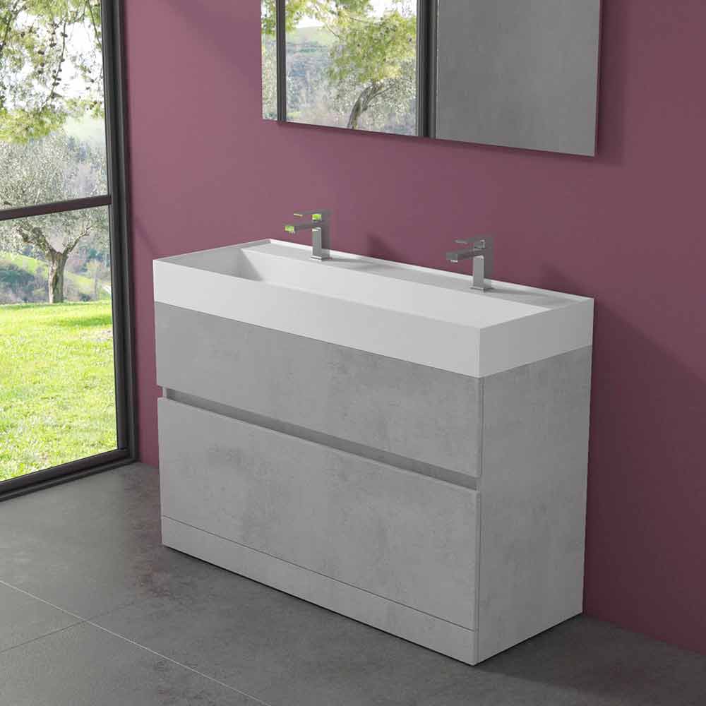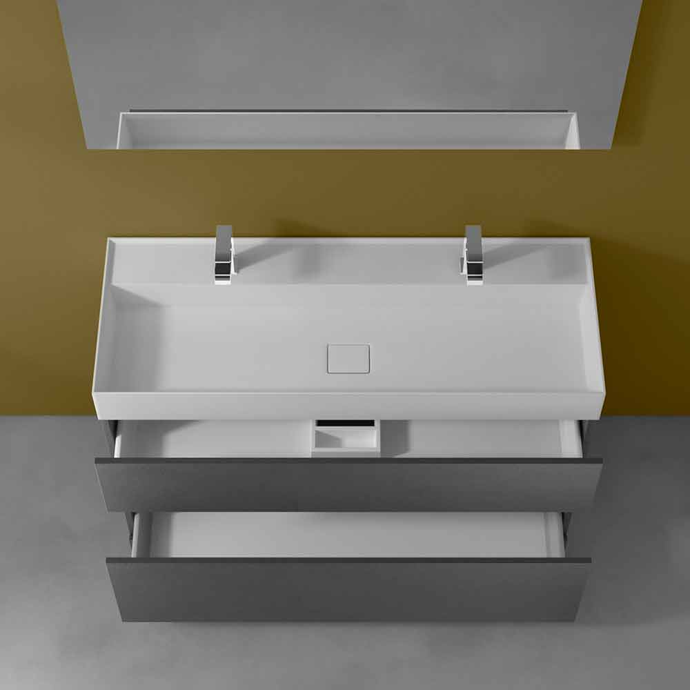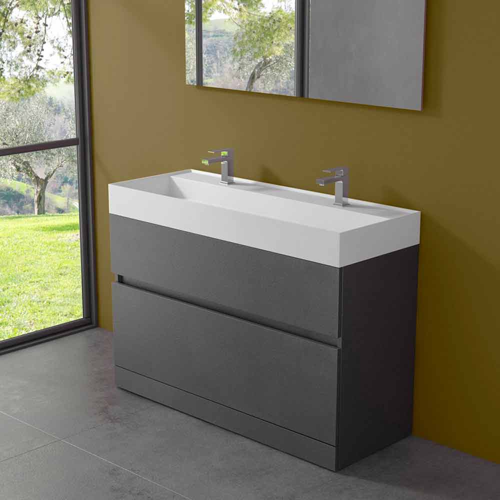 Meuble de salle de bain avec double vasque, design moderne en stratifié de différentes finitions avec panier et tiroir, fabriqué en Italie.