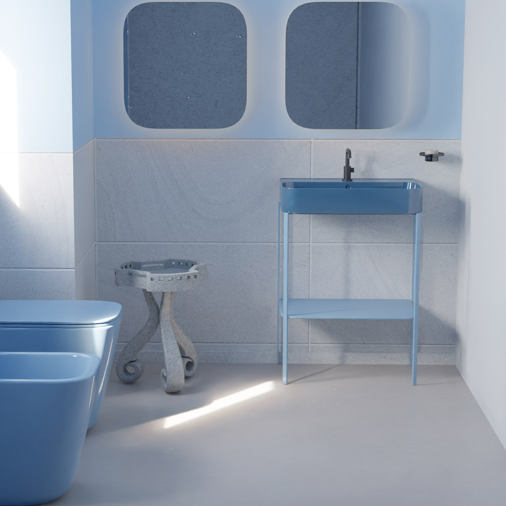 La structure, avec une étagère inférieure , soutient non seulement l'évier avec élégance, mais offre également un espace de rangement utile, optimisant l'espace sans sacrifier le style.