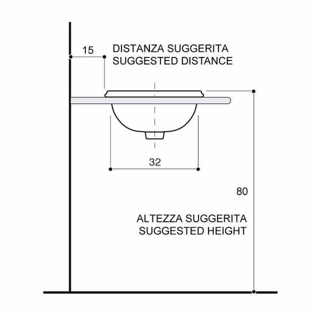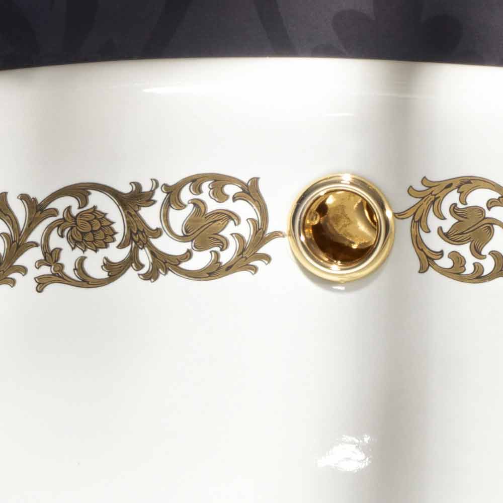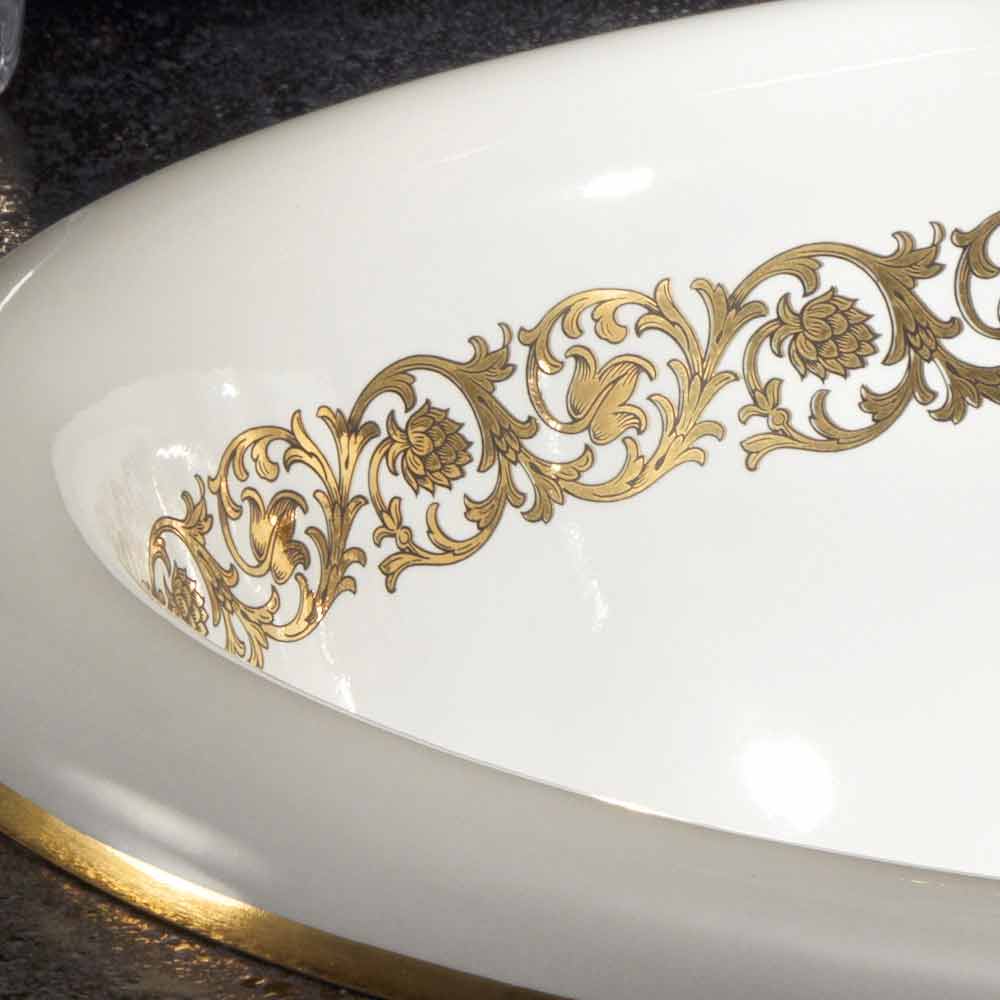 Lavabo encastré de salle de bain fabriqué en Italie en fire clay fait à la main décoré avec une bande or et bord 24 carats.