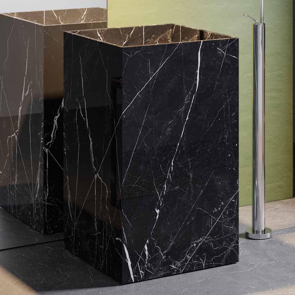 Lavabo sur pied pour la salle de bain en grès cérame, design géométrique, de haute qualité fabriqué en Italie.