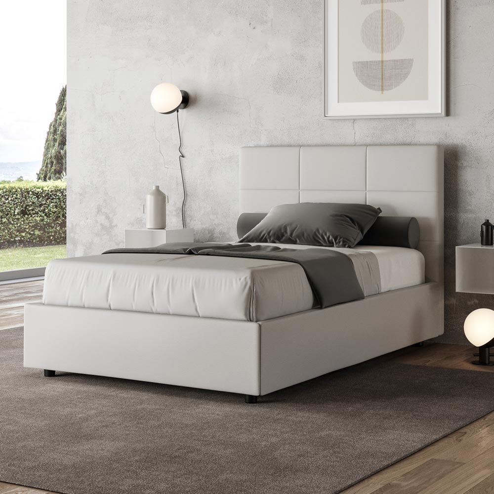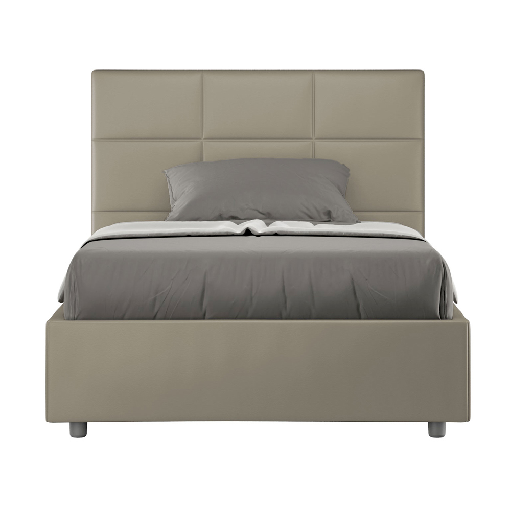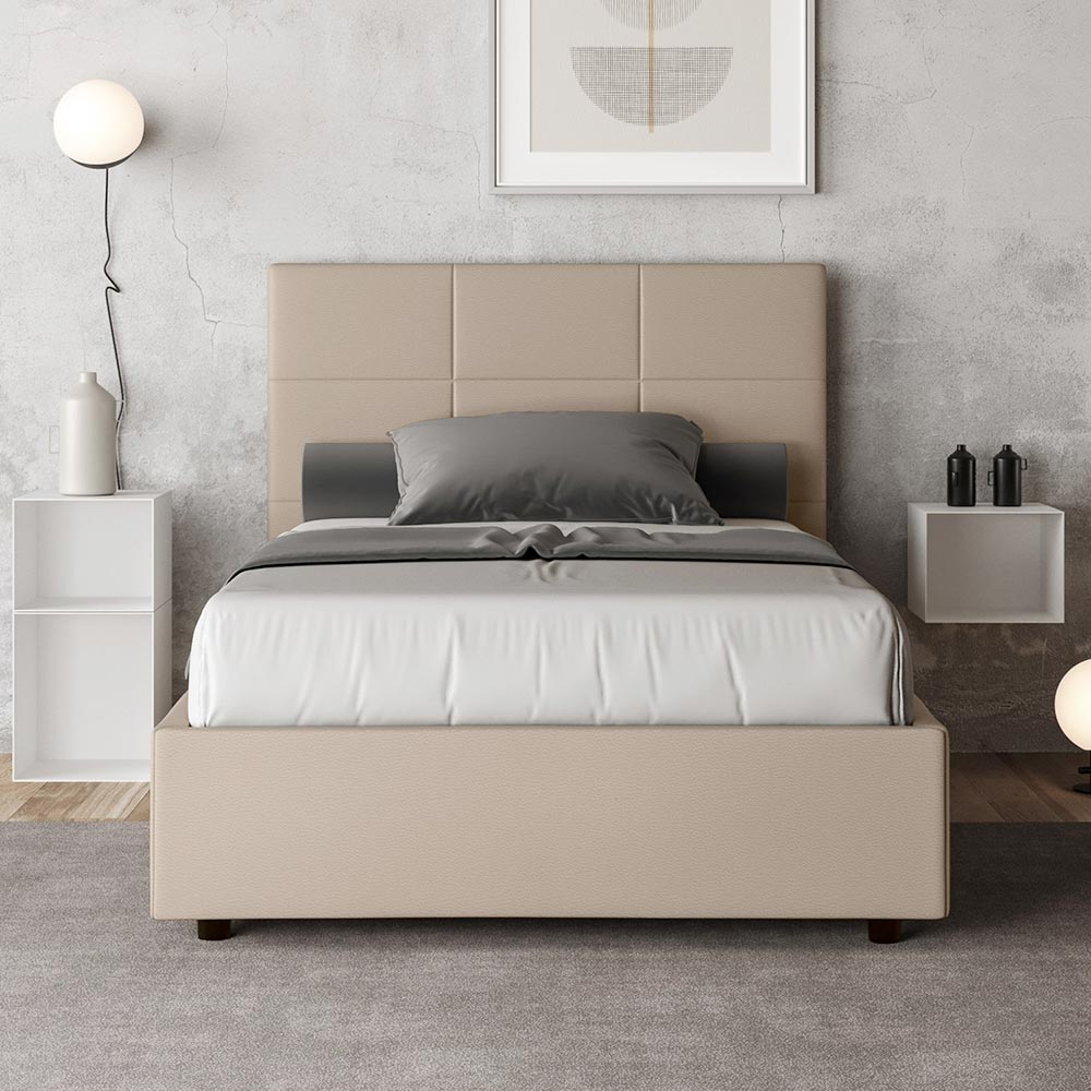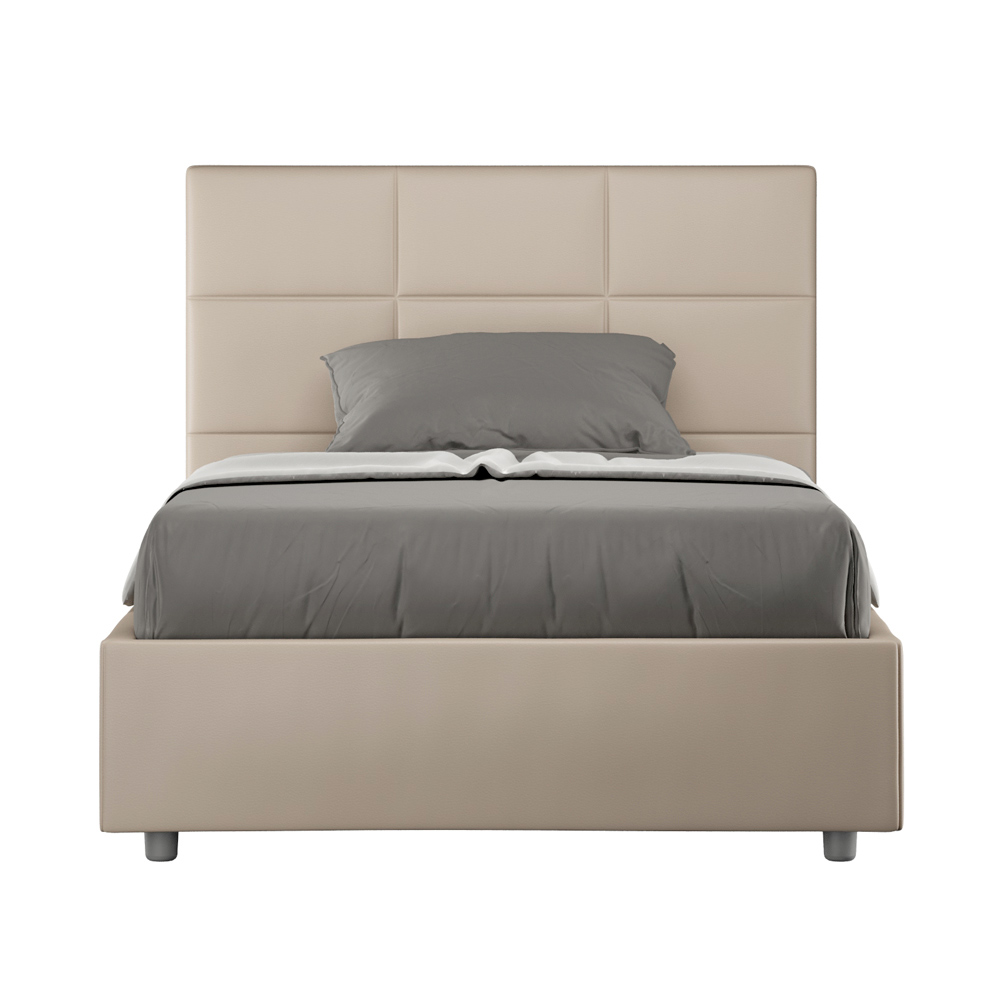 Lit 120 x 200 cm avec tête de lit rectangulaire en similicuir, fabriqué en Italie - Brina