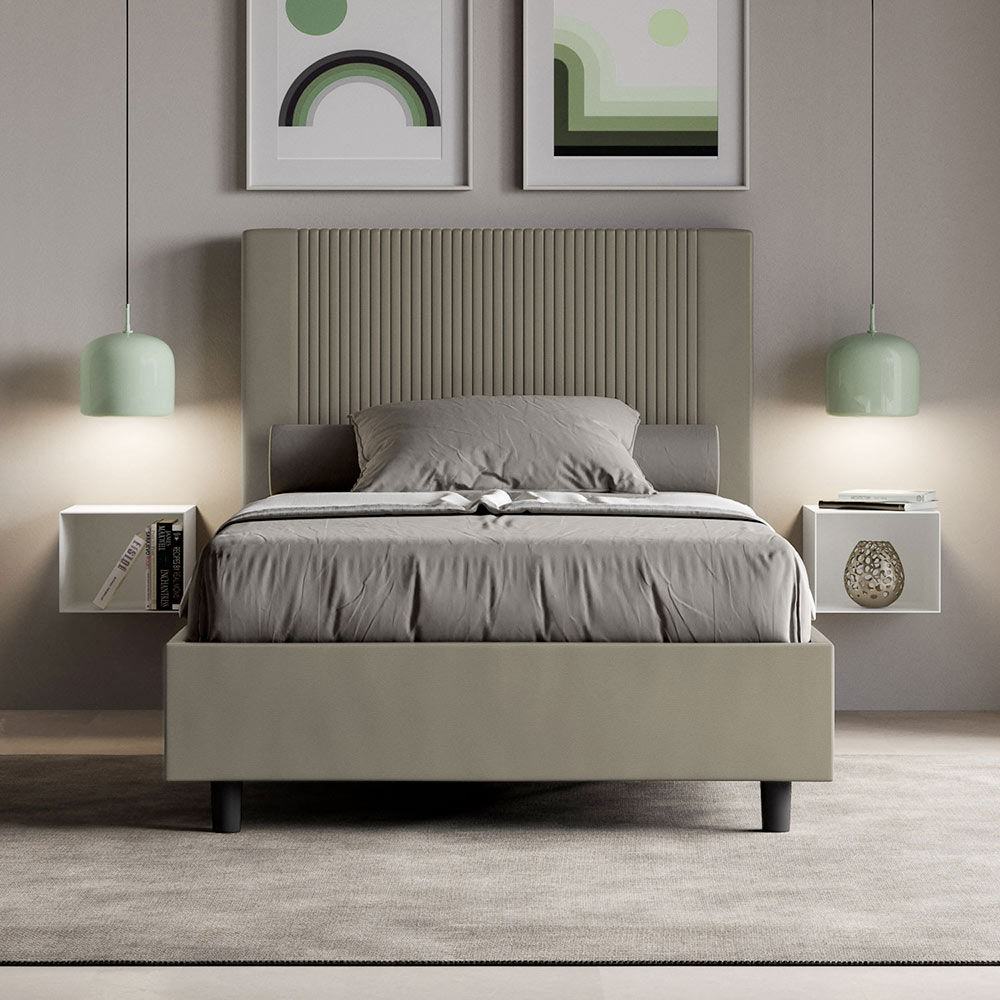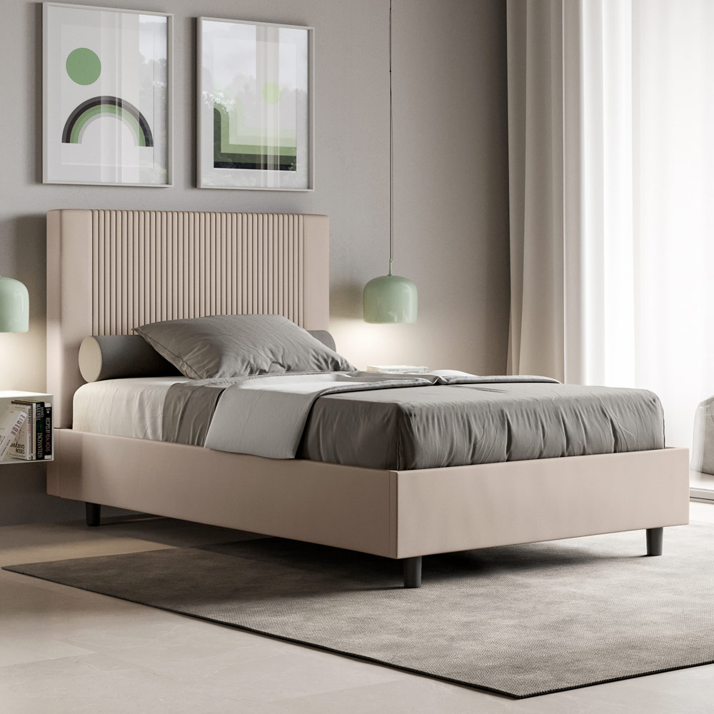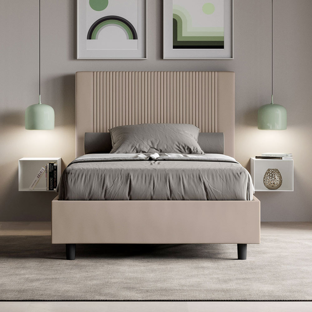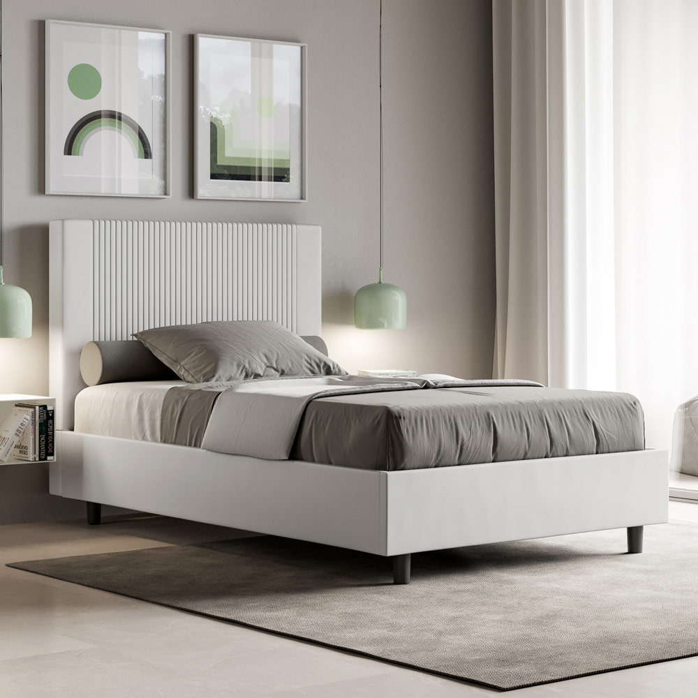 Lit 140 x 200 cm avec tête de lit ornée de lignes verticales, fabriqué en Italie - Pattini