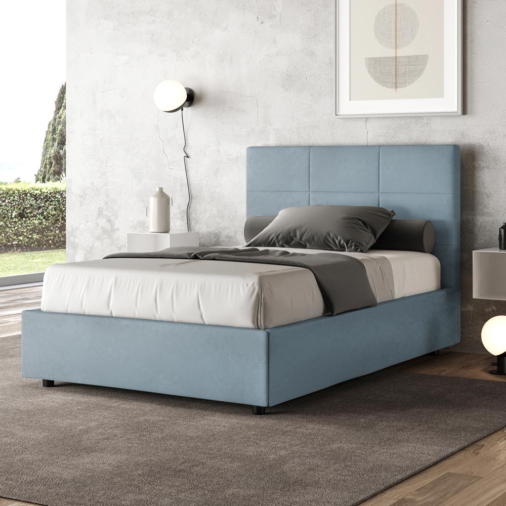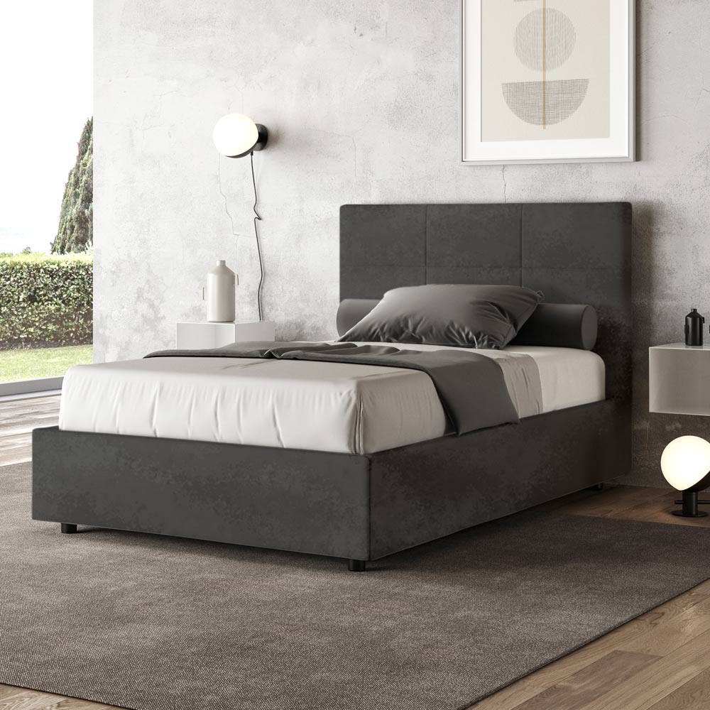Lit français 140x200 cm rembourré et recouvert de microfibre, fabriqué en Italie