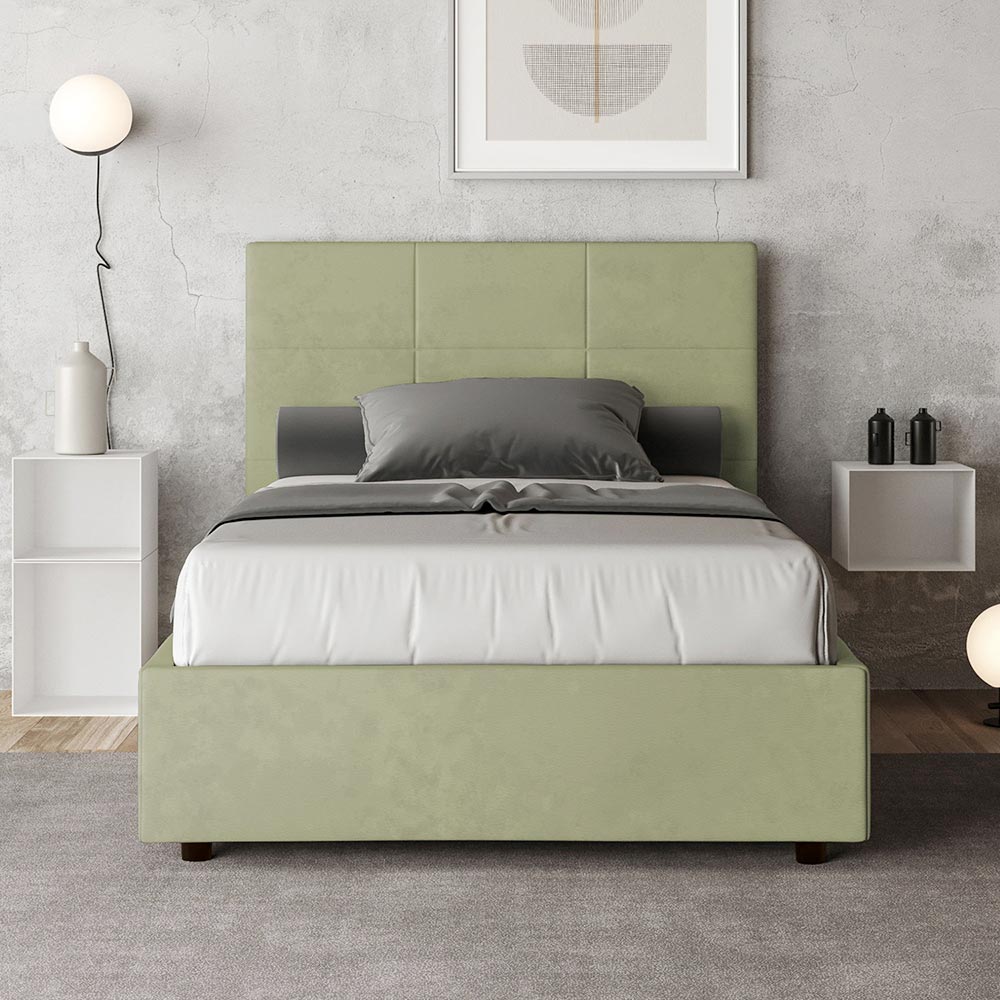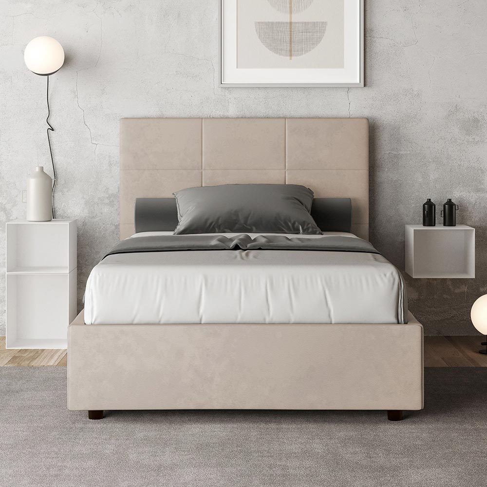 Lit 140 x 200 cm avec tête de lit rectangulaire en microfibre, fabriqué en Italie - Brina