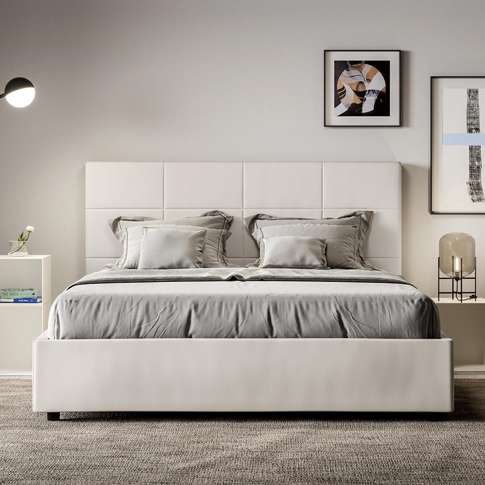 Lit double rembourré 160x200 cm recouvert de similicuir, fabriqué en Italie